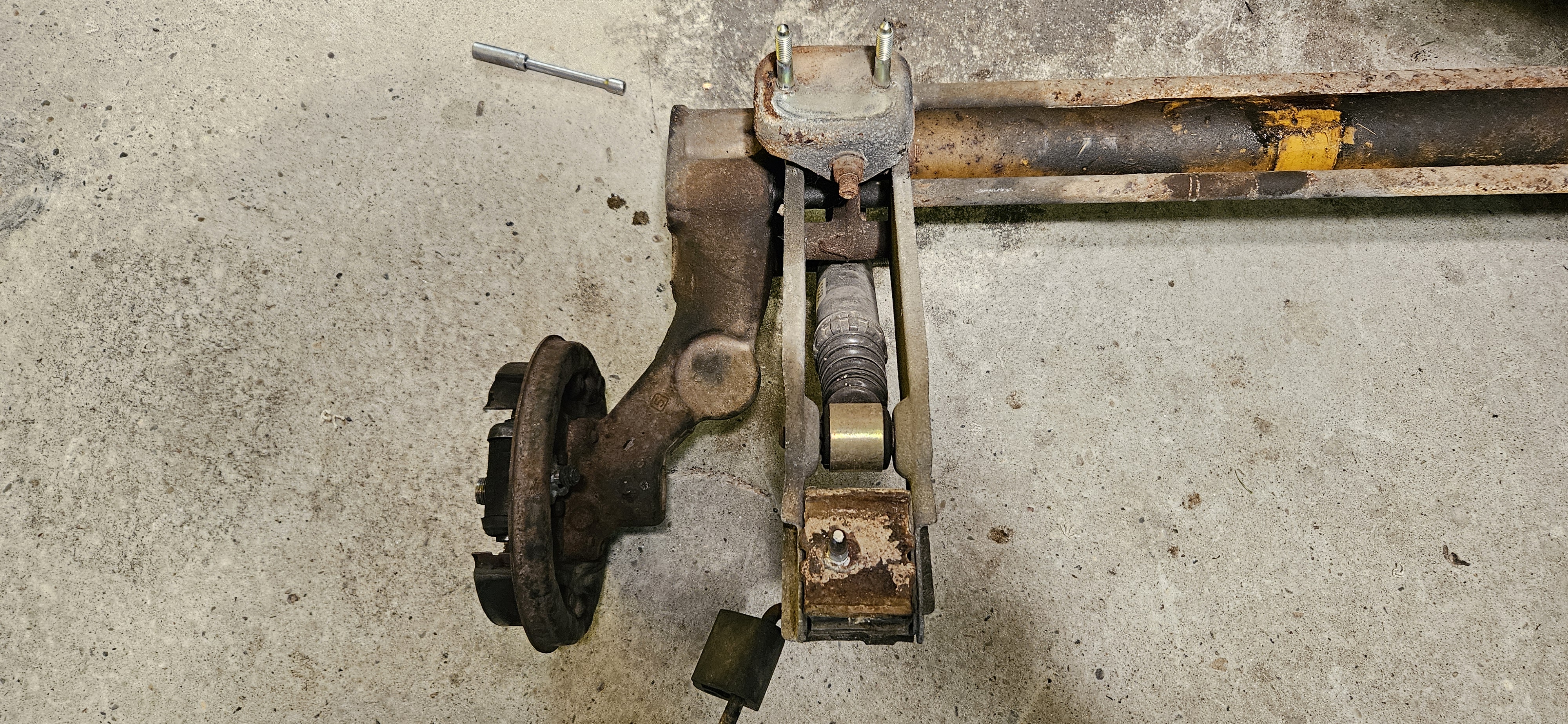 Dépose du train arriere le bras côté droit est marqué .