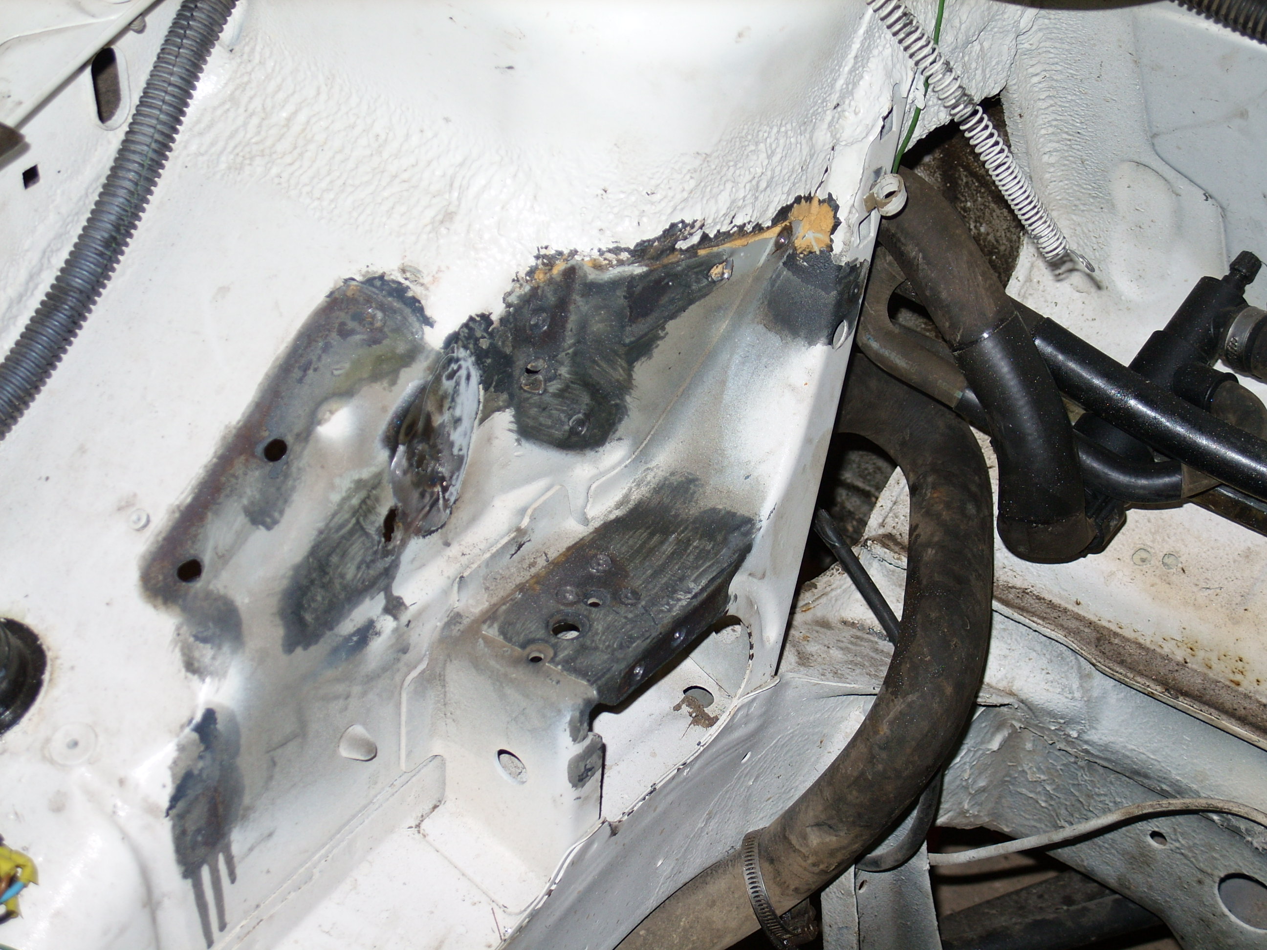 Mais la c'est le choc de la fumée sors du compartiment moteur, je cour voir, ouvre le capot, j'aperçois que la peinture de celui ci et en train de cloquer, et la surprise c'est en train de bruler entre la batterie et le moteur