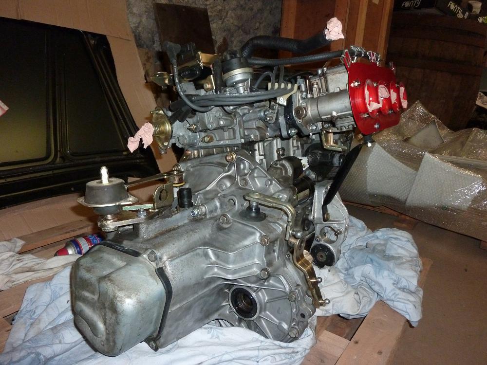 Déjà le moteur est assemblé presque complet (manque un allumeur et le faiisceau de l'alternateur au démarreur) prèt à être monté dans l'auto.