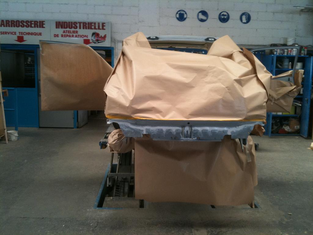 Aujourd'hui je me suis occuper des finitions.... j'ai refait tout les joints... custodes... bas de caisse.... compartiment moteur... arceau et voilou.... un peu vexé je suis partis et mon cousin m'à dit que le peintre fera le blakson passage de roues bas de caisse, intérieur et entrées.... comme ça je commencerais remonter l'interieur ;) :angry: