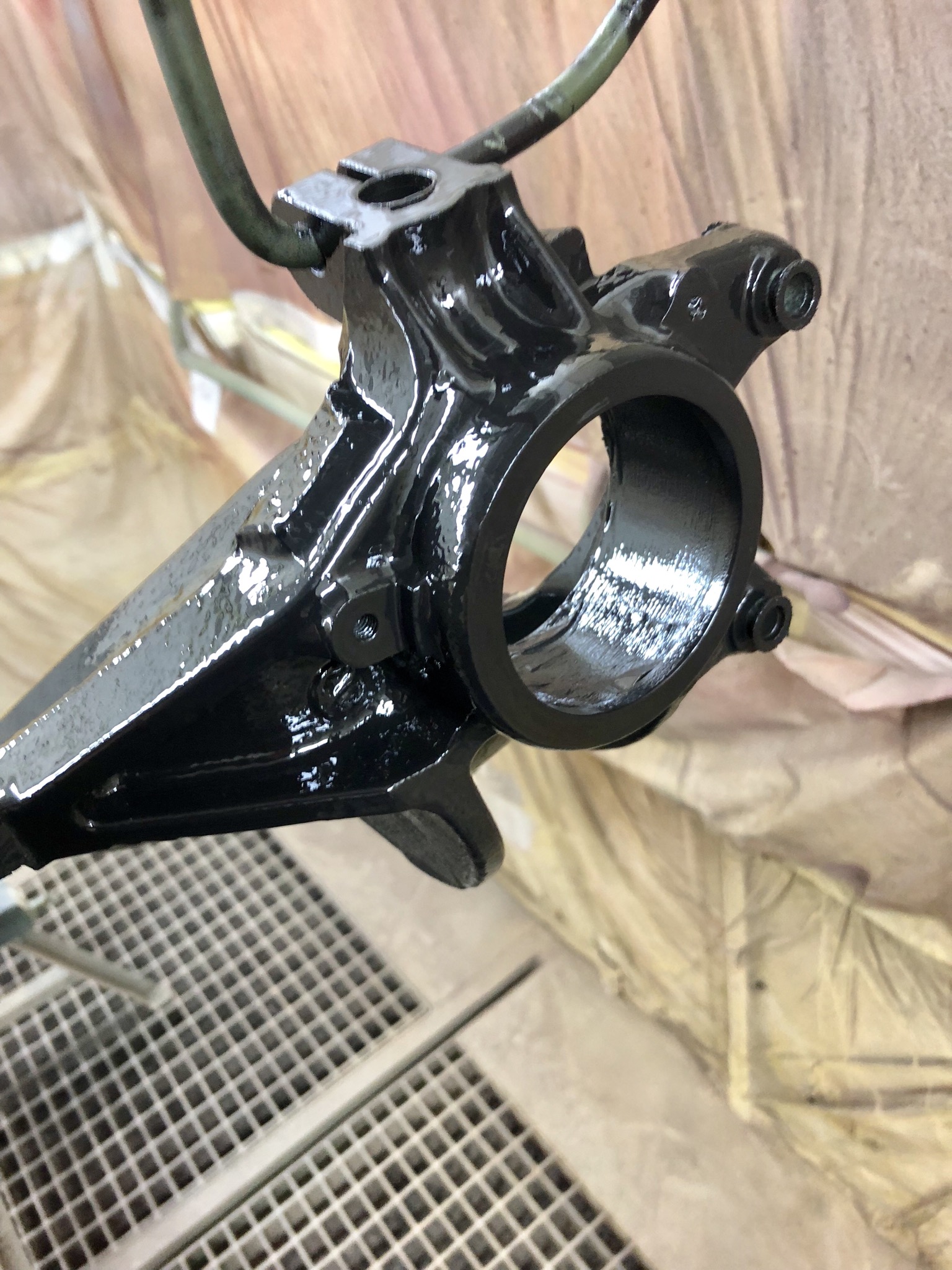 Et pour m’occuper et continuer la remise en état de la racing je me suis attaqué à la restauration des porte moyeux avant avec le passage au sablage et la pose de l’appret Phosphatant masquage des épargne et peinture noir demain.