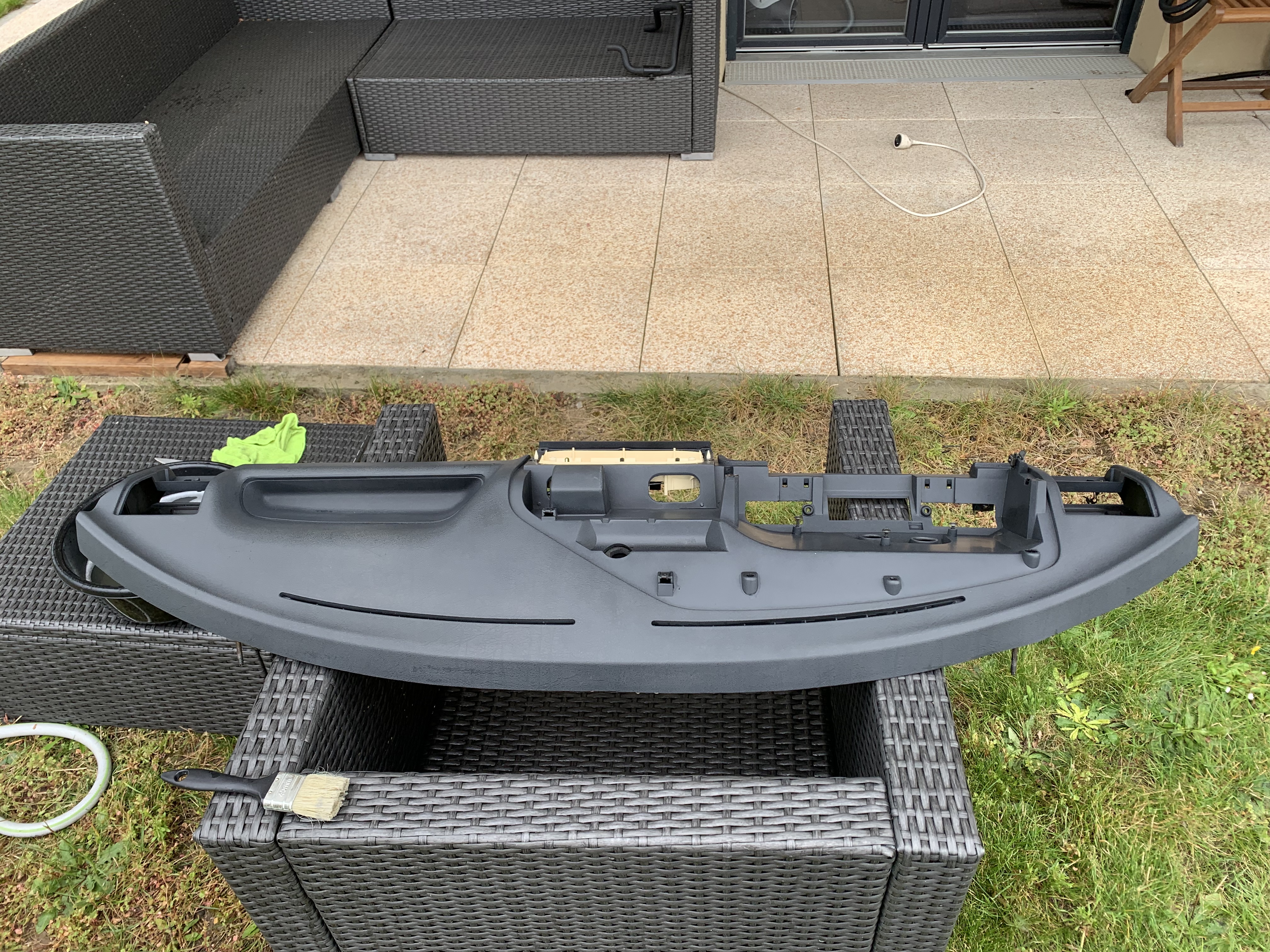 Nettoyage de la planche de bord. Elle présente qqs stigmates du temps passé. Et ensuite posé dans l’habitacle avec le combiné et le bl