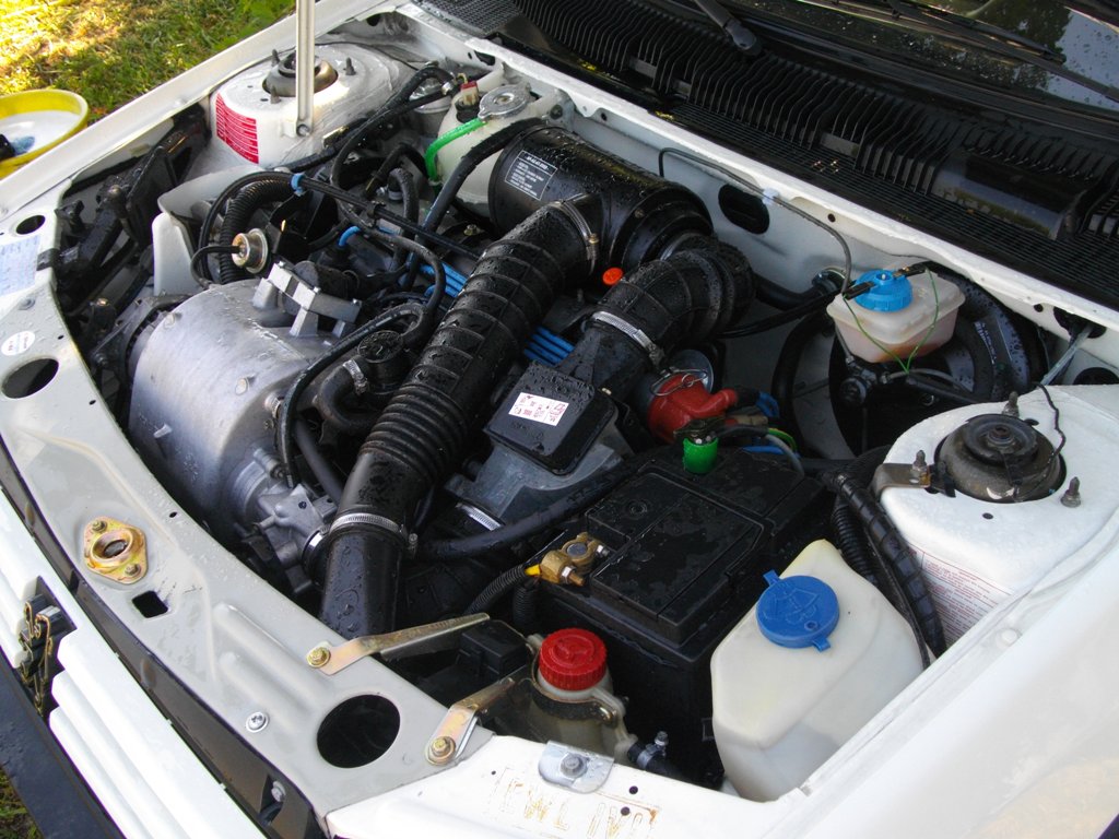 On lève le capot pour un contrôle vite fait des différents niveaux,.....tout semble correct.