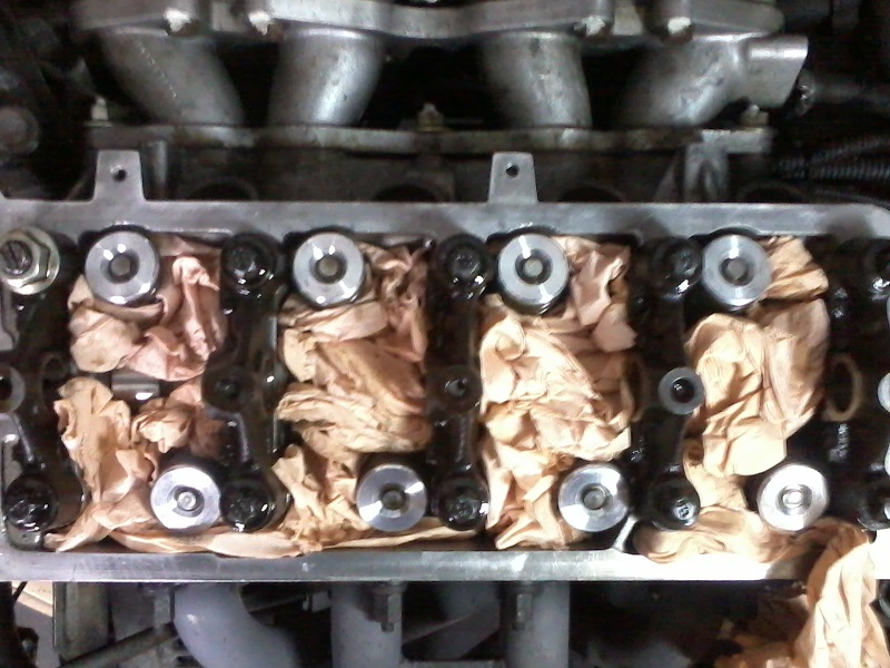 on continu, depose des culbuteurs pour cela devisser les vis de réglages puis retirer le goujon qui maintient le cache culbuteur. sous ce