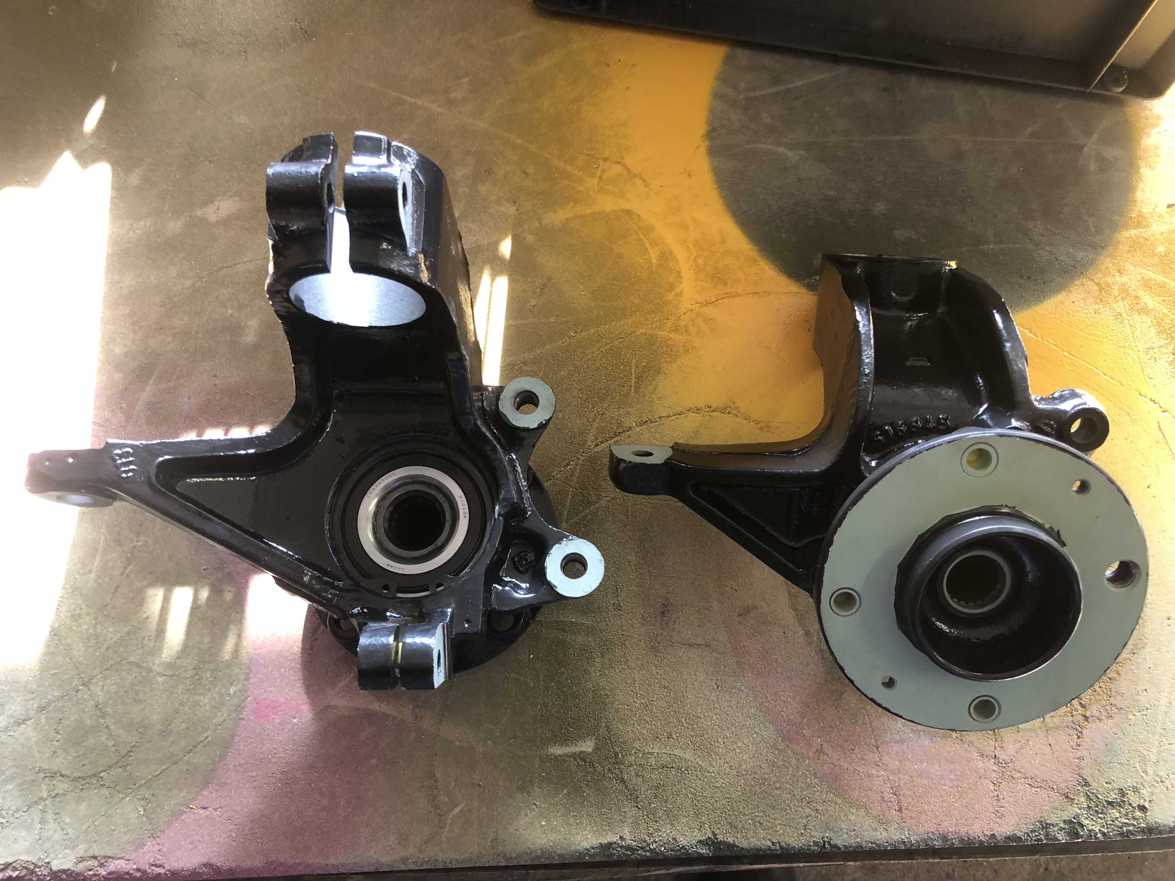 Et pour m’occuper et continuer la remise en état de la racing je me suis attaqué à la restauration des porte moyeux avant avec le passage au sablage et la pose de l’appret Phosphatant masquage des épargne et peinture noir demain.