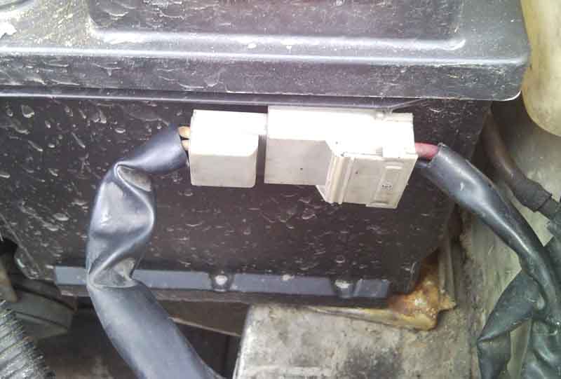 la masse est sur la fiche a coter du + donc quand tu la branche sur le boîtier + tu y mais la masse aussi donc court circuit
