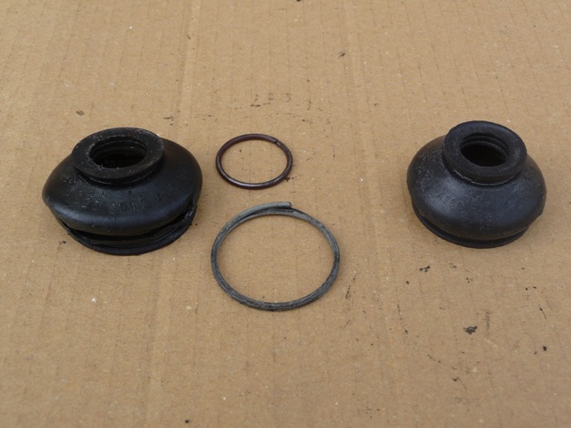 On récupère les 2 bagues métalliques sur le vieux soufflet et on remonte uniquement celui du dessus. On graisse généreusement la rotule.