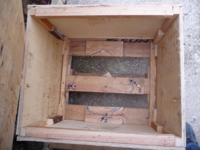 Pince à bec indispensable. Et voilà le travail. Et je répète la même chose sur l'autre triangle... Sinon, je donne une caisse pour transport de boite MA, servie 1 fois, avant mise à la benne.