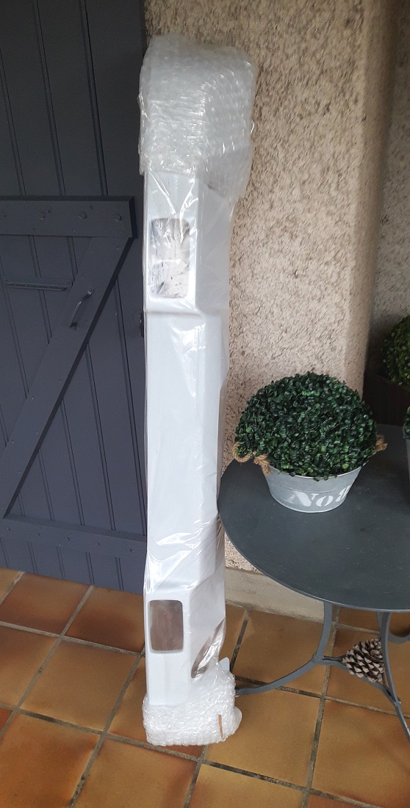J'ouvre le colis devant le livreur, au cas ou............ et là déception, la jupe est en fibre de verre. Il était précisé sur la description, fibre ou plastic.