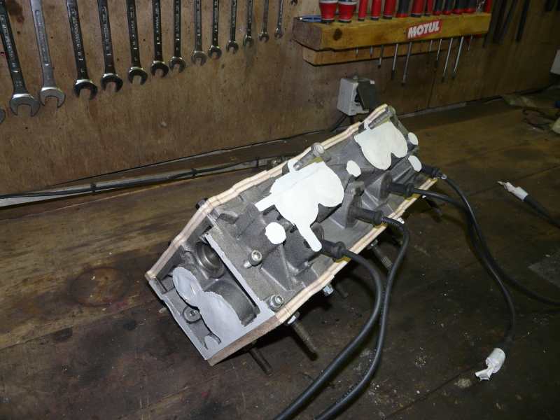 La culasse est prète aussi à l'intérieur, les conduits d'admission alignés à la pipe et rectifiés/microbillés, les conduits d'échappement lissés, les soupapes nettoyées.
