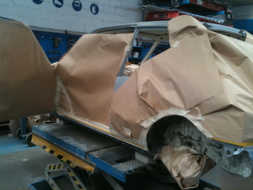 Aujourd'hui je me suis occuper des finitions.... j'ai refait tout les joints... custodes... bas de caisse.... compartiment moteur... arceau et voilou.... un peu vexé je suis partis et mon cousin m'à dit que le peintre fera le blakson passage de roues bas de caisse, intérieur et entrées.... comme ça je commencerais remonter l'interieur ;) :angry: