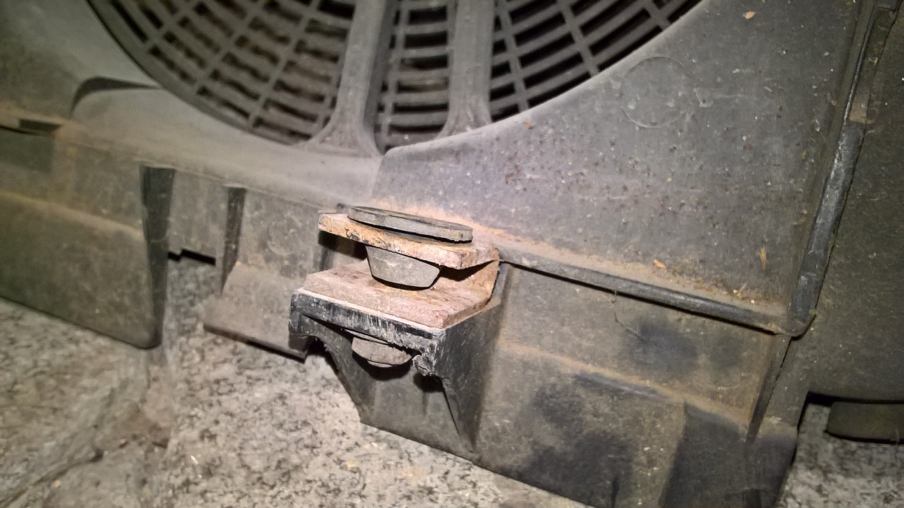 J étais bien parti pour remplacer mon radiateur en 1 heure jusqu'à tomber sur un soucis de fixation supérieure : je n'ai pas les retours verticaux d'origine, voilà comment se présente le mien. J'ai ma petite idée pour bricoler quelque chose mais je suis preneur de vos solutions