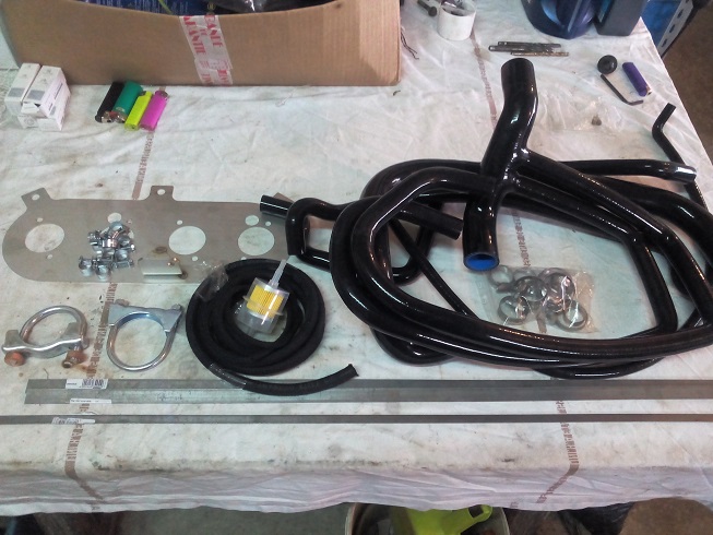J'ai reçu un kit de durites en silicone ( C'est pas très joli mais au moins, c'est neuf) J'ai aussi reçu quelques bricoles qu'il me manquait, comme durites essence + colliers, durite pour la capsule de l'allumeur, colliers échappements, etc....... J'ai terminé les nouveaux cablages de l'auto (les sondes, etc)