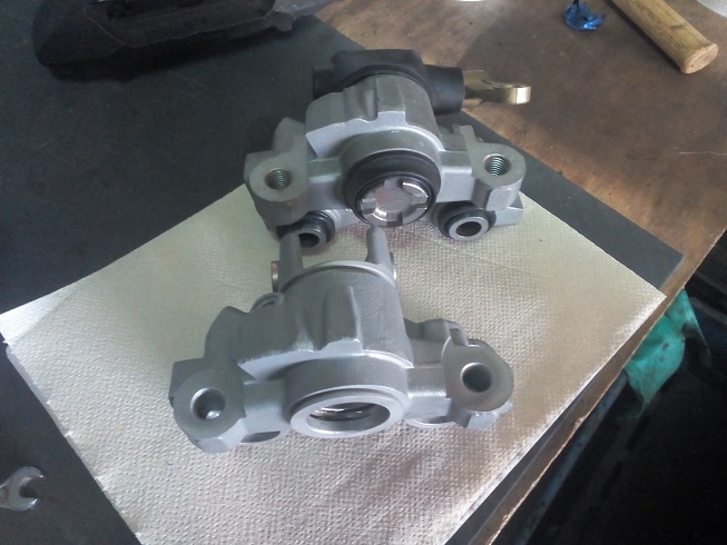 Un bon dégraissage + microbillage puis j'ai récupérer les joints neufs de l'étrier malade et j'ai fini par remonter l'ensemble