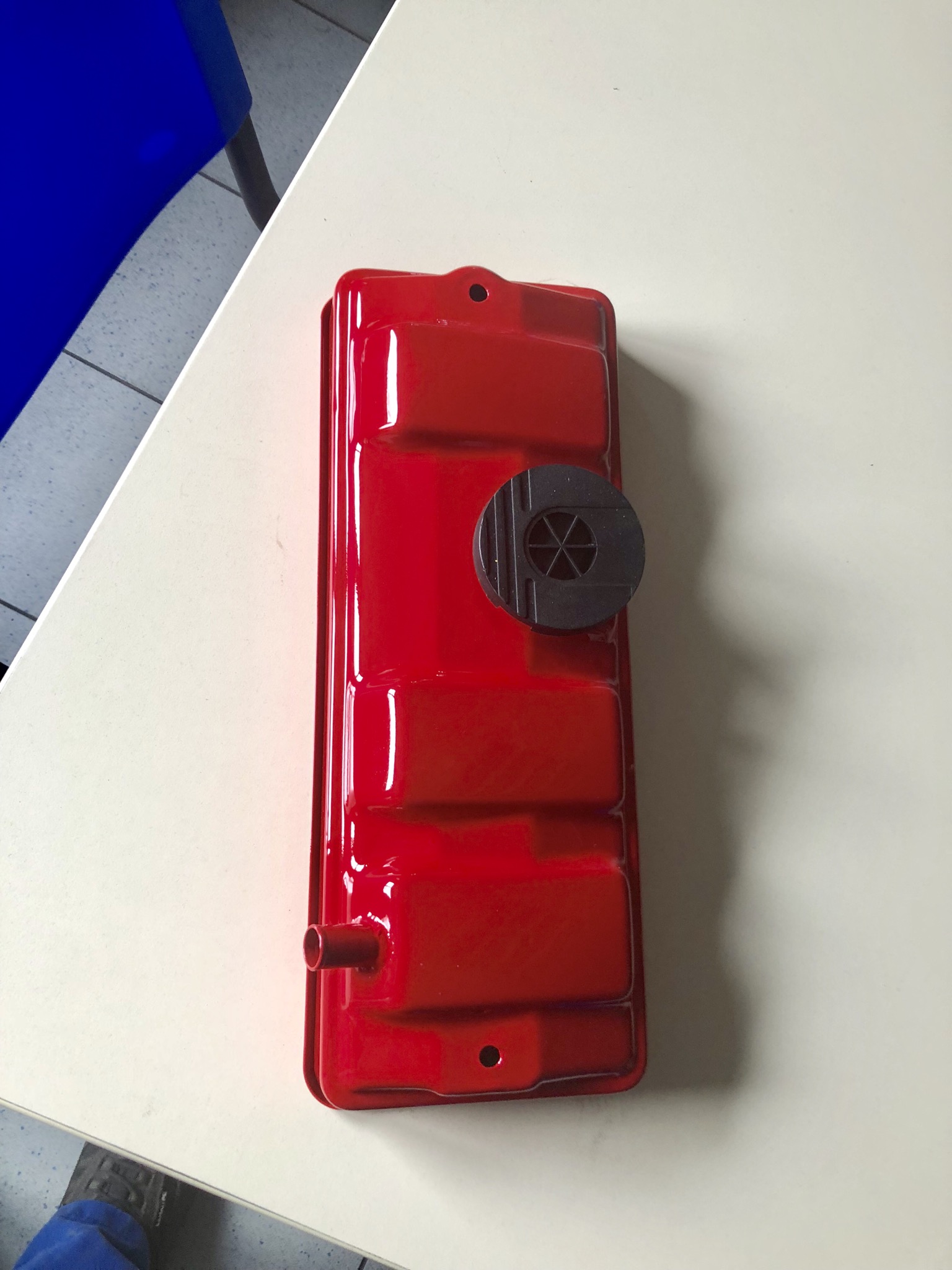Voilà une photo du cache culbuteur avec la peinture sèche.
