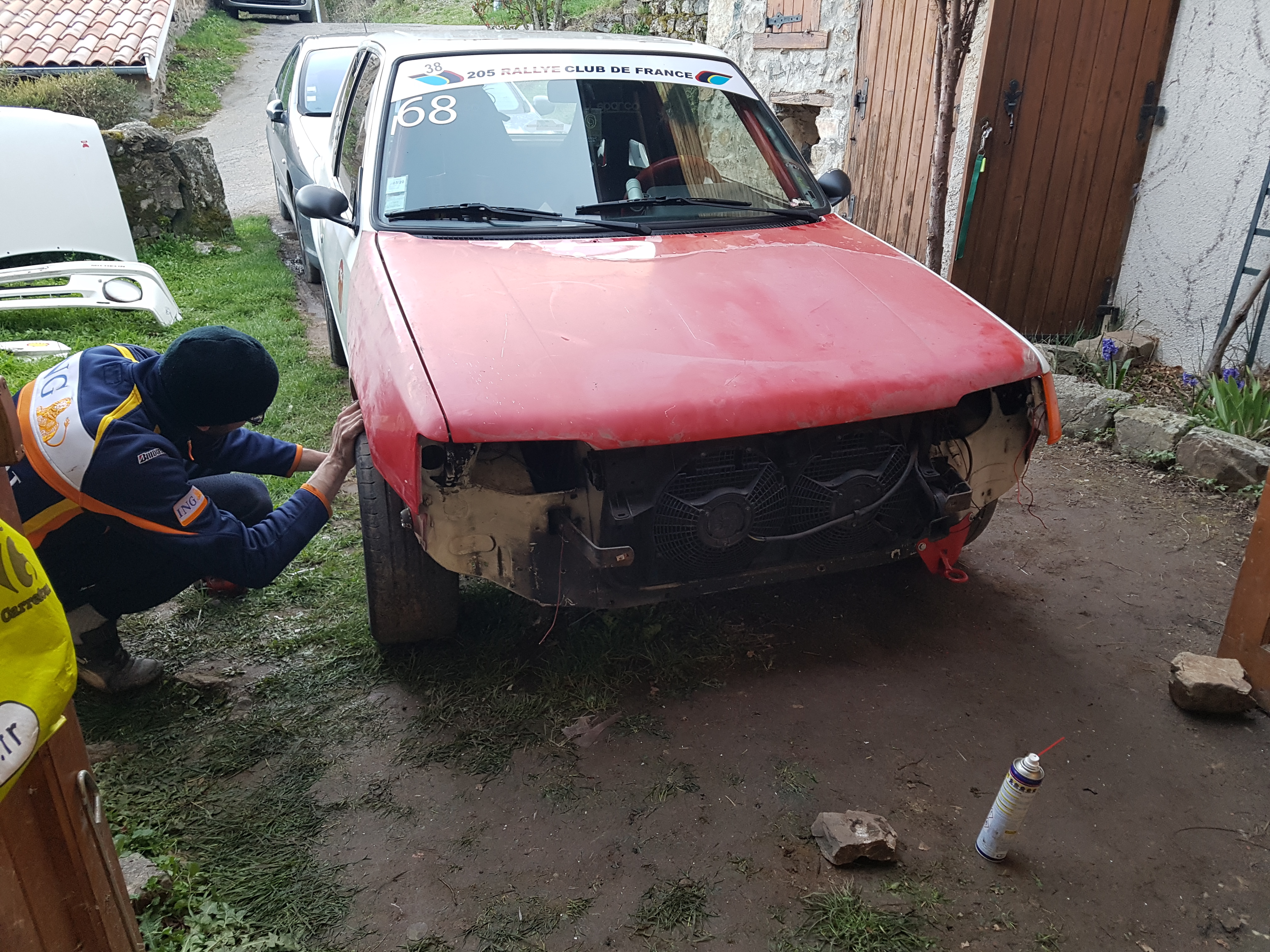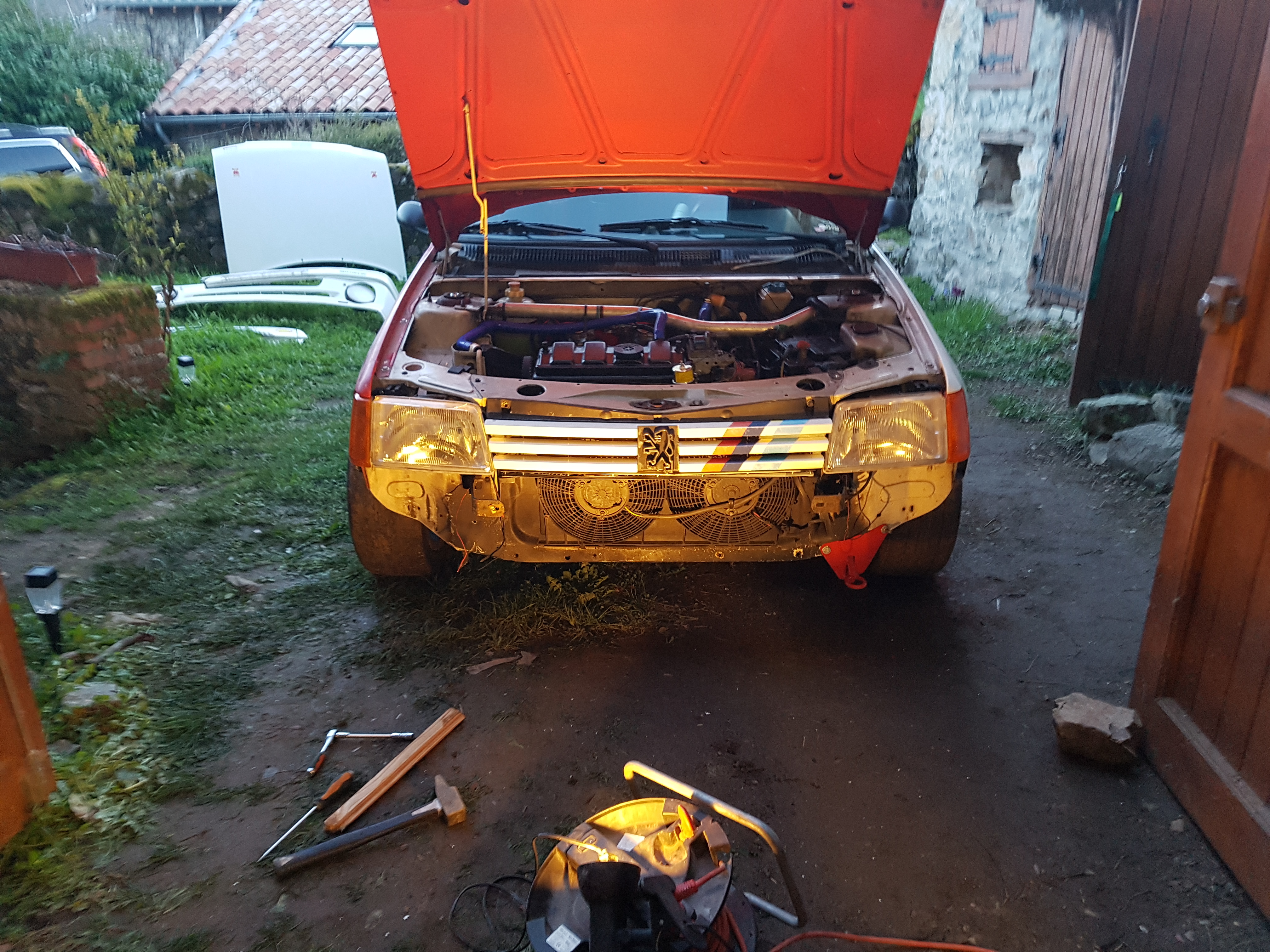Quand à Alex, il posait les pièces qu'il avait chez lui, devant le portail de Stef, samedi à la première heure pour qu'il puisse les monter chez moi dimanche avec Gousk. Jeannot qui m'accueille le dimanche matin aussi pour me filer un capot, alors qu'il était peinard chez lui en amoureux avec sa femme...