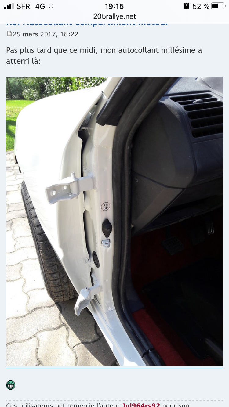 Re: position des autocollants du compartiment moteur