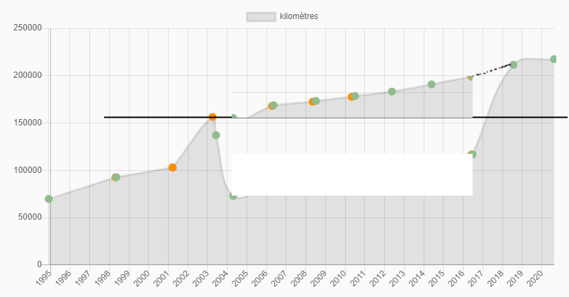 Bien dans l'idée ce site, mais ça n'assure pas la véracité du kmage, ça permet juste de repérer une incohérence, moi par exemple en 3 ans elle n'aurai fait que 3 000 km …