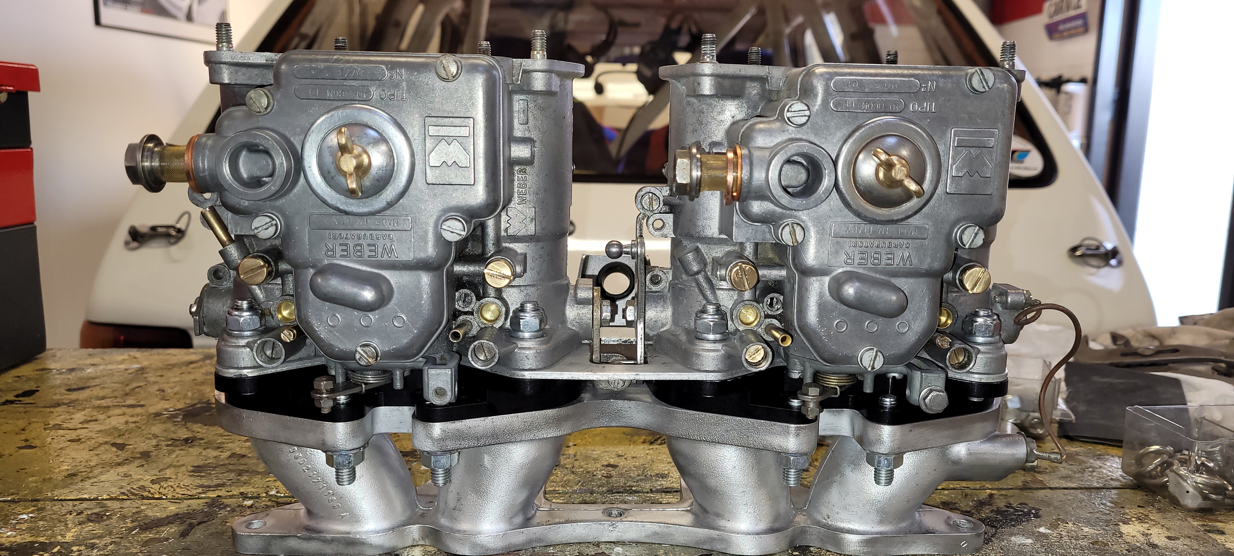 Les deux carbus ont bien sur étés démontés, tous les joints remplacés, et olivier prend soin de passer toutes les pièces au bac à ultrason, et celles qui le peuvent sont microbillées.