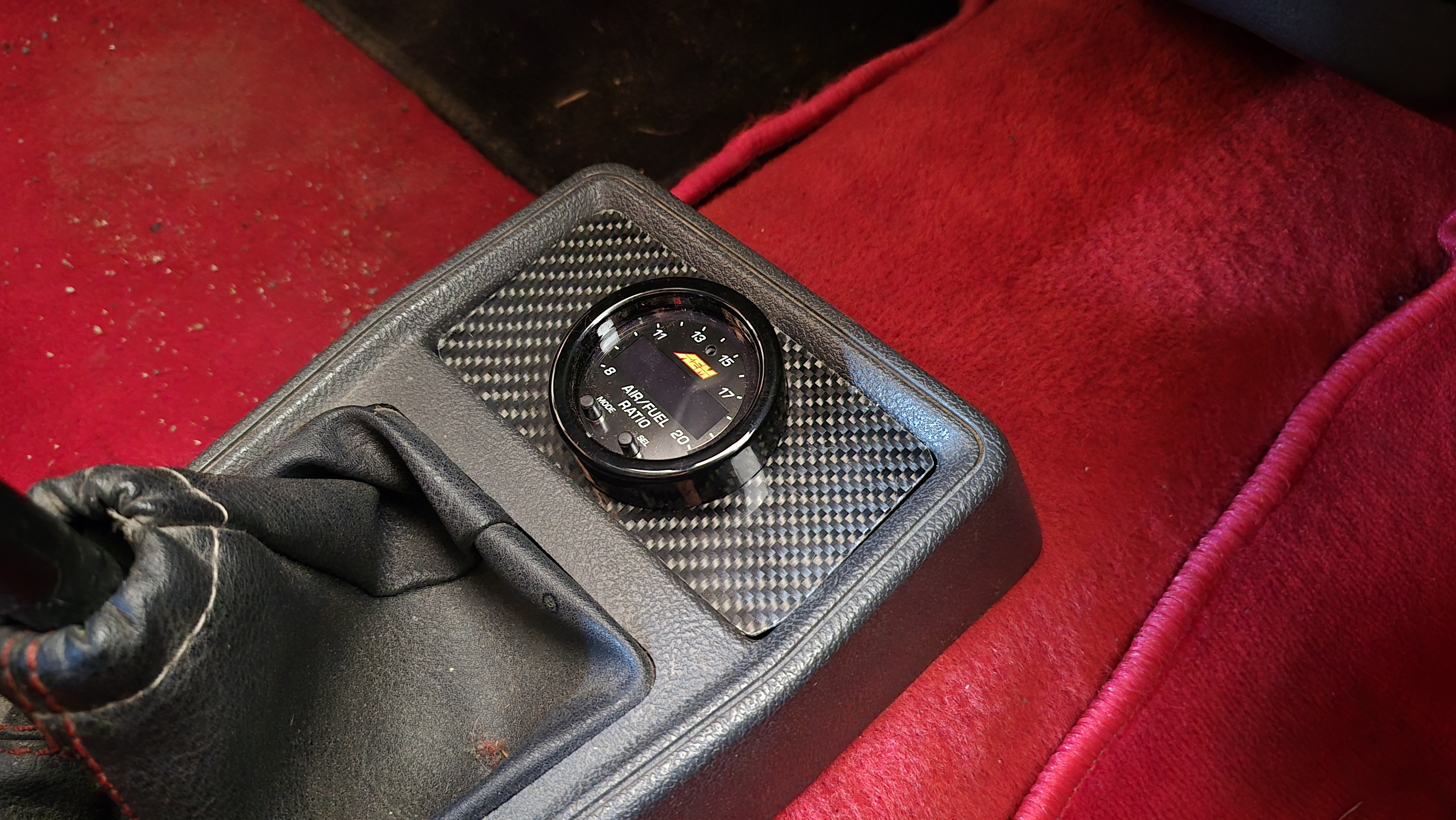 Pas facile de trouver un emplacement qui ne dénature pas le tdb et je pourrai passer le faisceau sous la moquette, brancher l'alimentation sur l'autoradio et passer le faisceau de la sonde Lambda par le passe-cloison en caoutchouc libre sur le tablier.