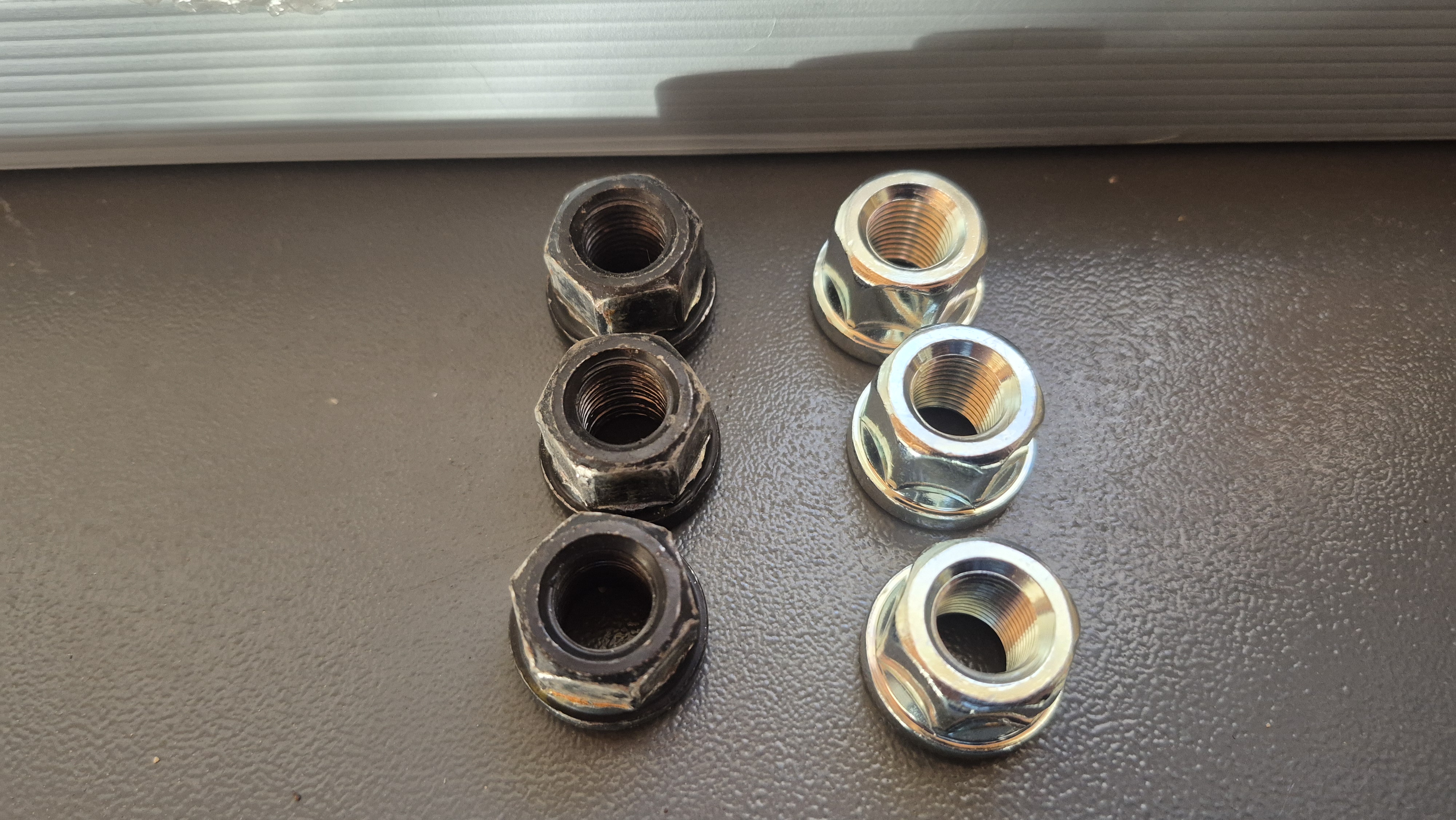 J'ai enfin trouvé des écrous plats ressemblant à mes écrous antivol, je les ai donc remplacés ce matin :ok: