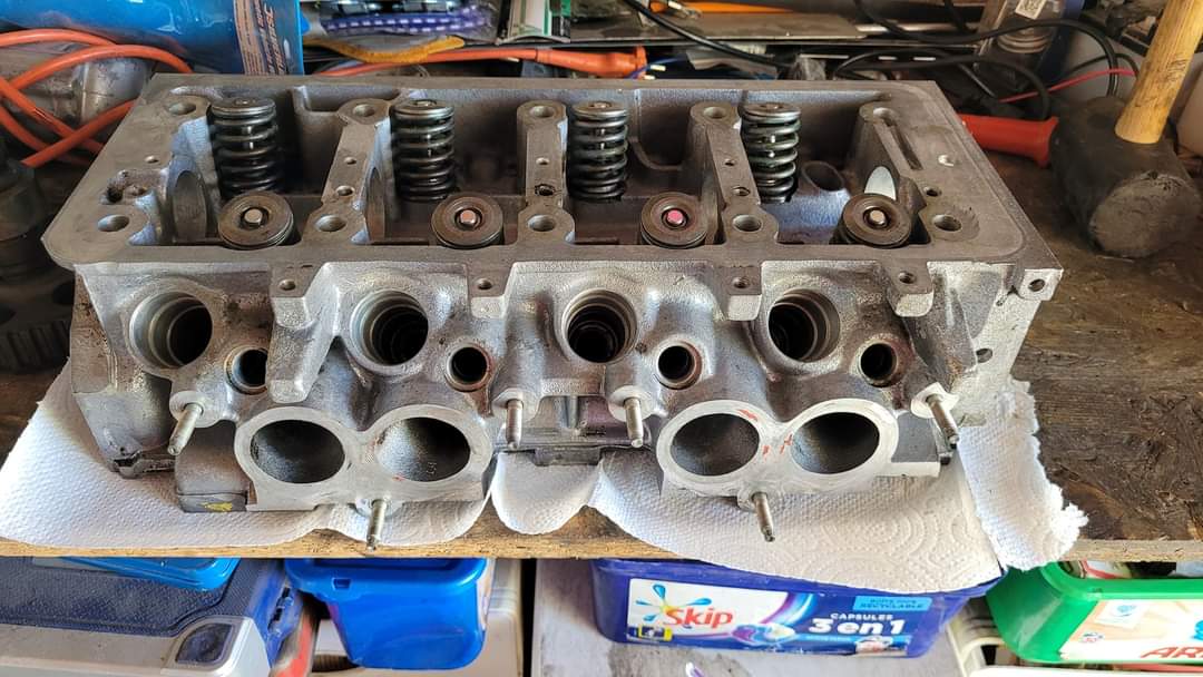 Parallèlement à ça, Vincent avait acheté il y a déjà une moment un moteur de Saxo (identique au sien ) qui avait 128000kms. On a enfin trouvé le temps de l'ouvrir ce matin pour en faire l'état des lieux