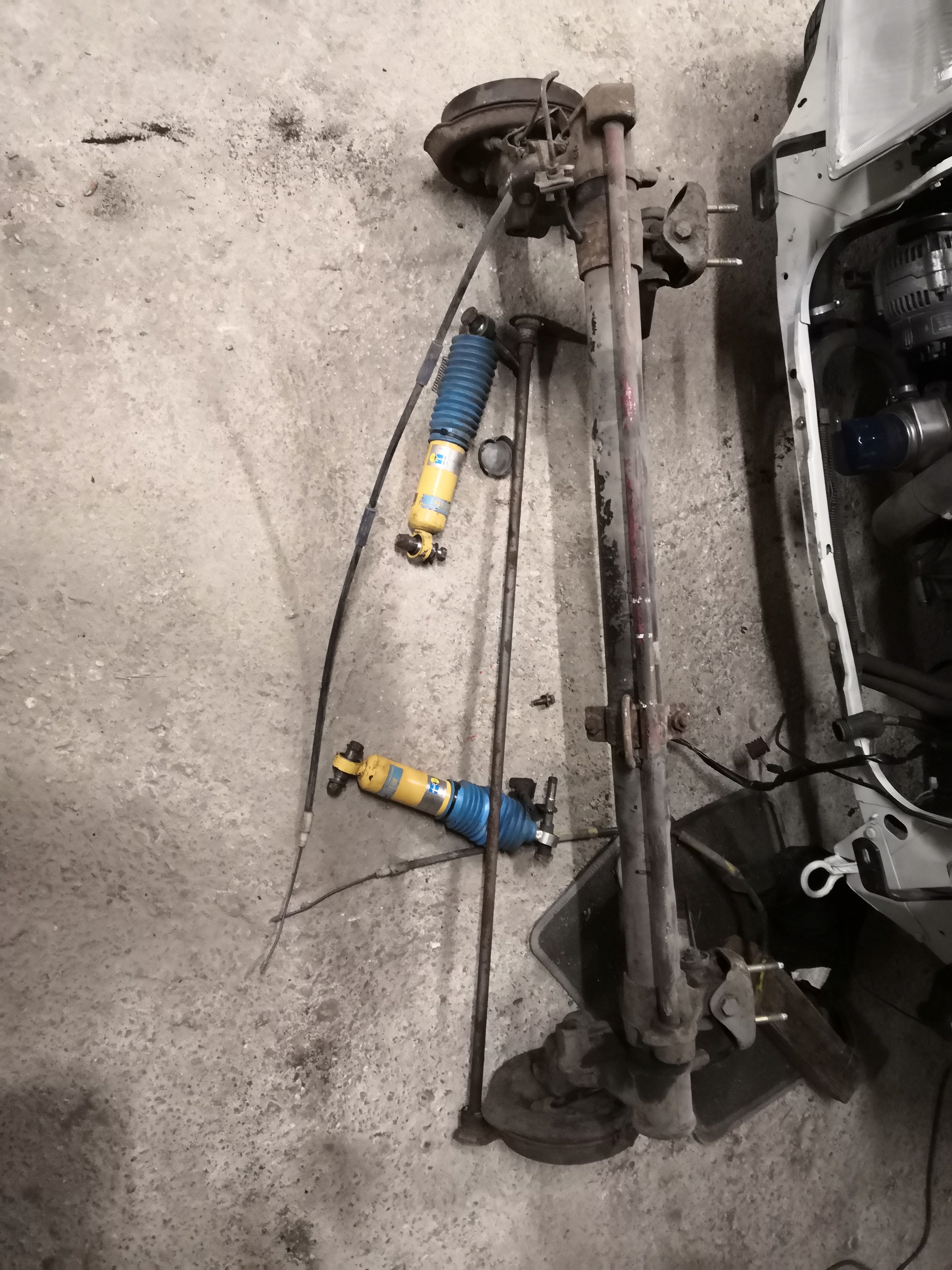 Bonjour à tous. Bon ben je me suis penché sur le train arrière aujourd'hui. Dans l'excitation après l'achat j'avais mesurer uniquement les barres de torsion et je pensais avoir mesurer 19 à peu près et du coup je m'étais dit que c'était forcement un train arrière de rallye et où gti. En fait en regardant pour mes tuyaux de frein je me suis aperçu que le trou taraudé du cylindre était en 12x100 au lieu de 10x100.Et ce soir j'ai mis le train en pièce et en fait j'ai la barre stab qui est en 16, la traverse en 60mm, et des tambours de 205 de base. Les barres de torsion sont rouges avec des traits blancs et jaunes et le diamètre entre 18,5 et 19.Cest donc un train de xad ou xs, gt, xt. En tous cas pas de rallye ou gti :( . J'ai des poutres en 65, des barres de rallye. Ça va être l'occasion de me faire un train arrière tout neuf :ok: