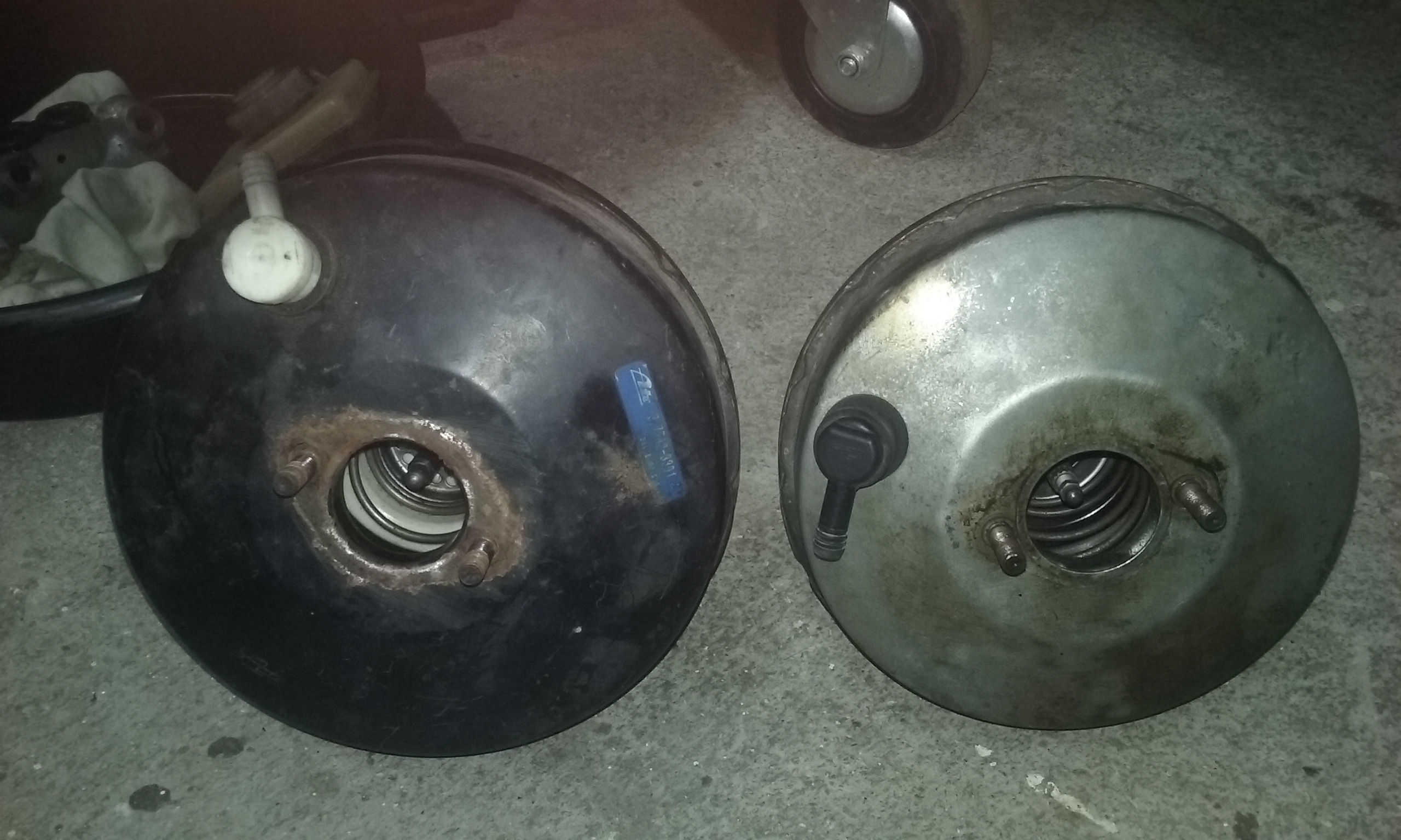 Donc,voyant que le mastervac d'ax étant petit ,c'est un 8"(200 mm) j'avais dans les pièces un mastervac de 106 en 9" (225mm) que j'ai installé...j'ai aussi monté des plaquettes Ferrodo Ds3000 à la place des 2500 que je suspectai etre glacées