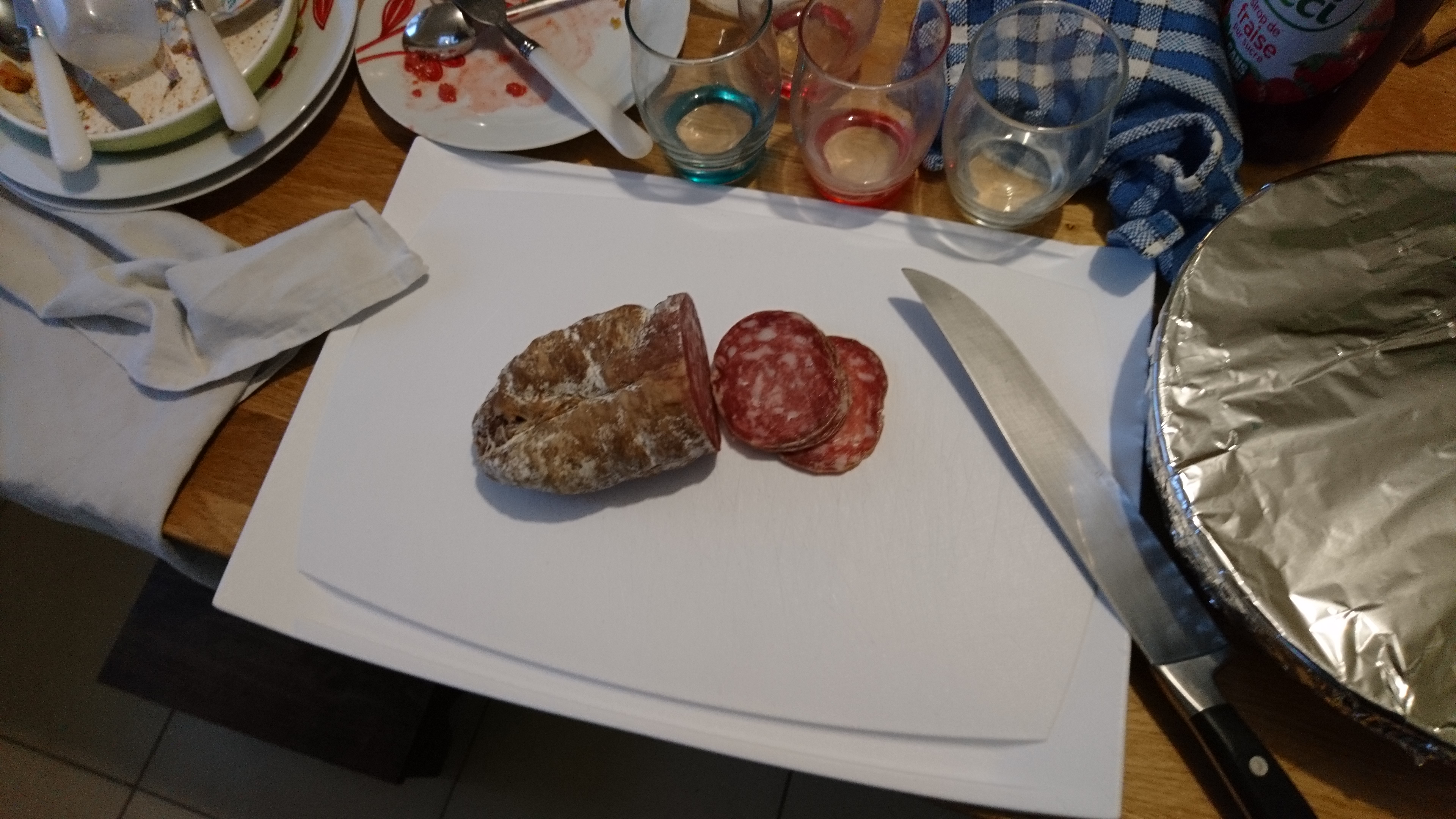 Départ de Lubersac à 10 h, arrivée 16h30, en fait il faut normalement 4h30........mais petit incident dans un gauche, avant la descente sur CAHORS,........... un panneau bleu, à l'entrée du virage........que j'ai loupé........ demi tour, on remonte, et là je le loupe pas.......IL y a marqué: " LA GARENNE "..........c'est ouvert on entre,...... juste un apéro........ une salade de ris d'agneau aux chanterelles et foie gras.........une pastilla pied de porc, foie gras sauce morilles.......un petit rocamadour, un échantillon de glaces pour digérer.......le tout avec une bonne cuvée de chez Rotier......voilà comment tu perds deux grosses heures....après quoi, j'ai cédé avec une extrême bonté, le volant de Sidonie à madame.......c'est ça la confiance dan un couple.........et pour ceux qui vont dire, et j'en connais: " le salop, il avait picolé, et il en a profité pour refiler le volant à sa femme pour roupiller "....... ce sont des mauvaises langues.............Tout d'abord, je ne dormais que d'un œil, et je changeais de temp en temps....... mais il est vrai que derrière des lunettes de soleil, cela ne se voyait pas.