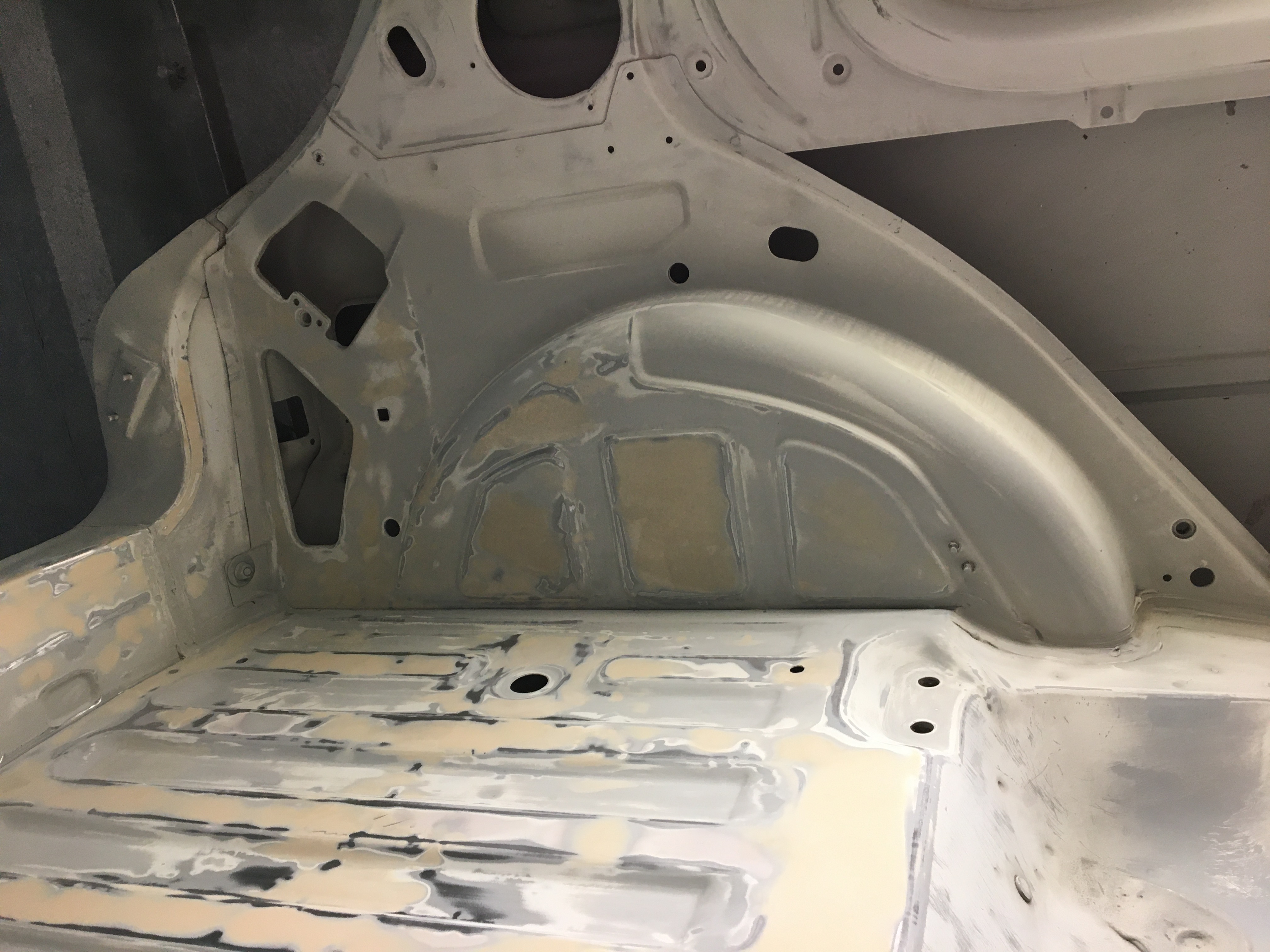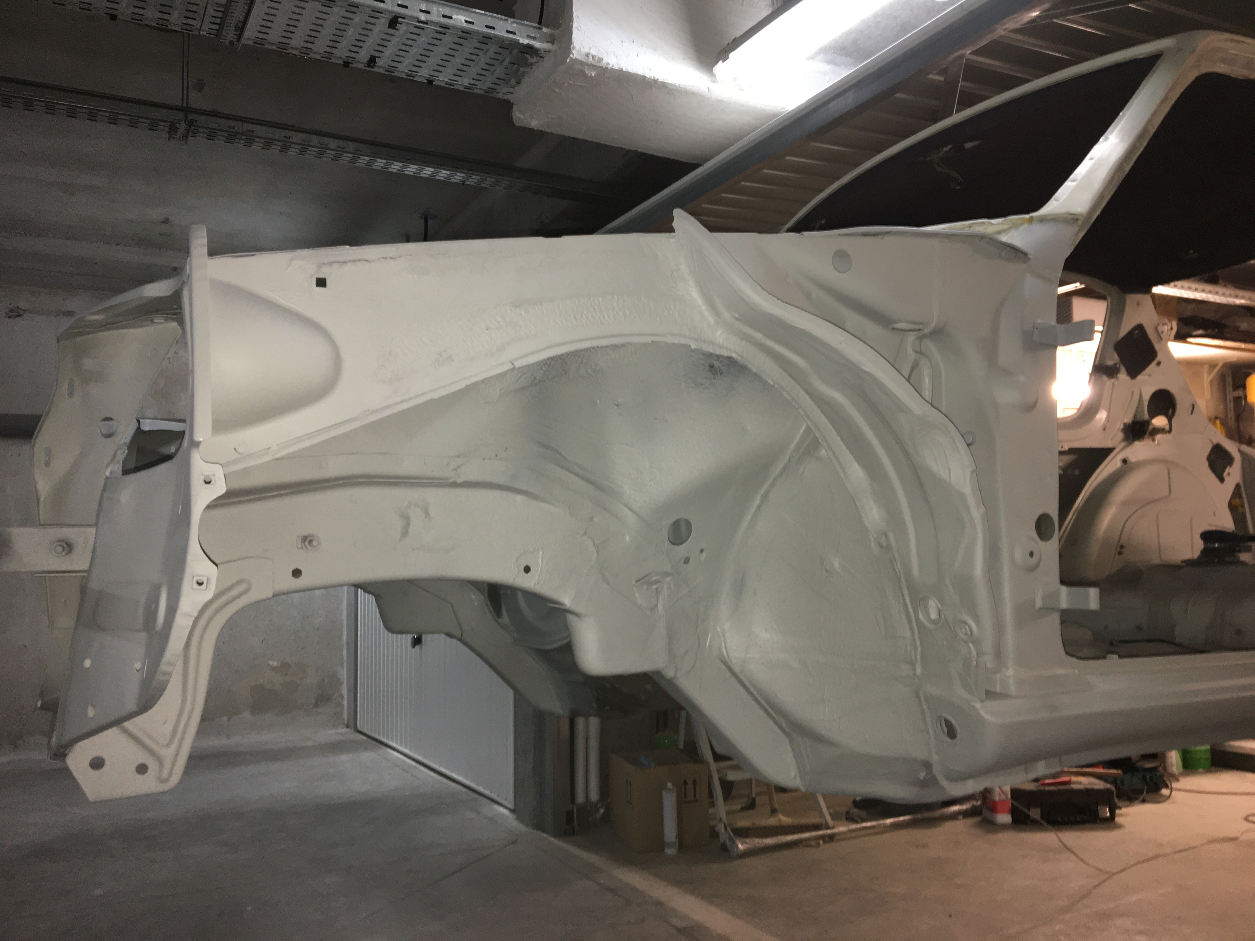 Ensuite apprêt sur tout le dessous de caisse et les passages de roues.