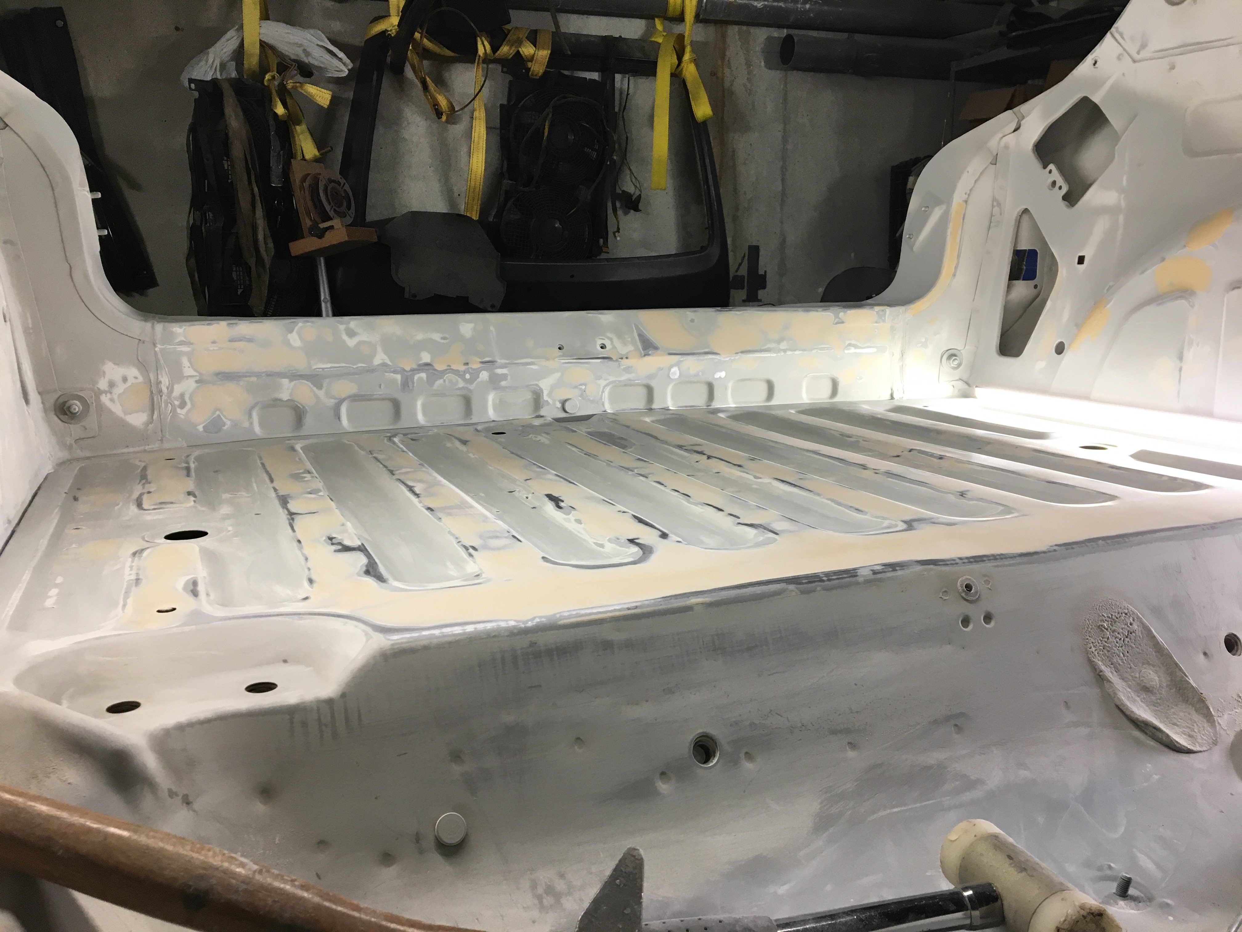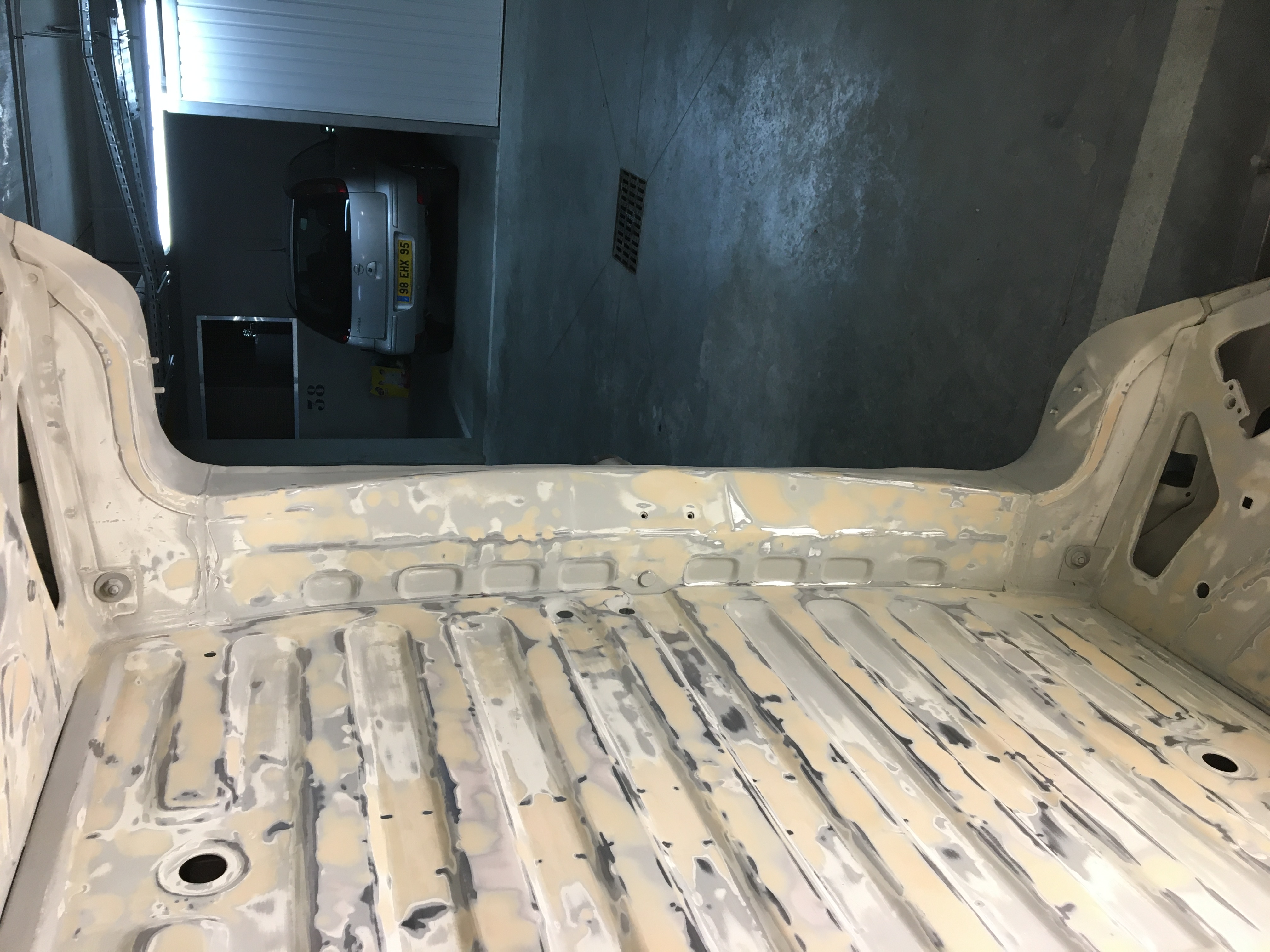 Ce week-end j’ai fini de bien dégrossir mon plancher de coffre, la traverse ar et les deux passages de roues de chaque côté.