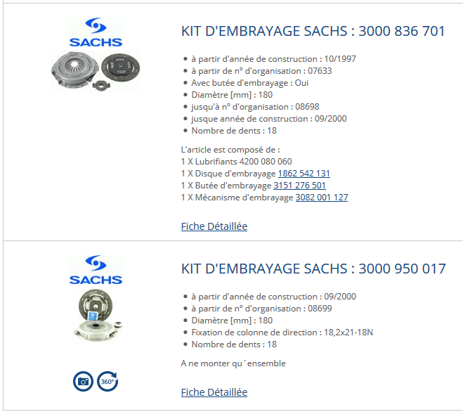 Perso,...je préfèrerai prendre cette référence : Kit d'embrayage SACHS : 3000950017