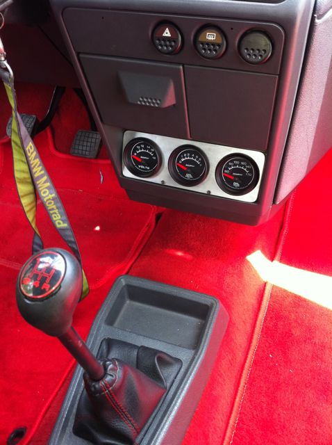 Enfin, une vue des manos montés a la place de l'autoradio. Ce sont des Autometer. PS: contrairement à une info publiée sur ce site, ils sont livrés avec les sondes. Au prix du dollar, c'est très interessant!
