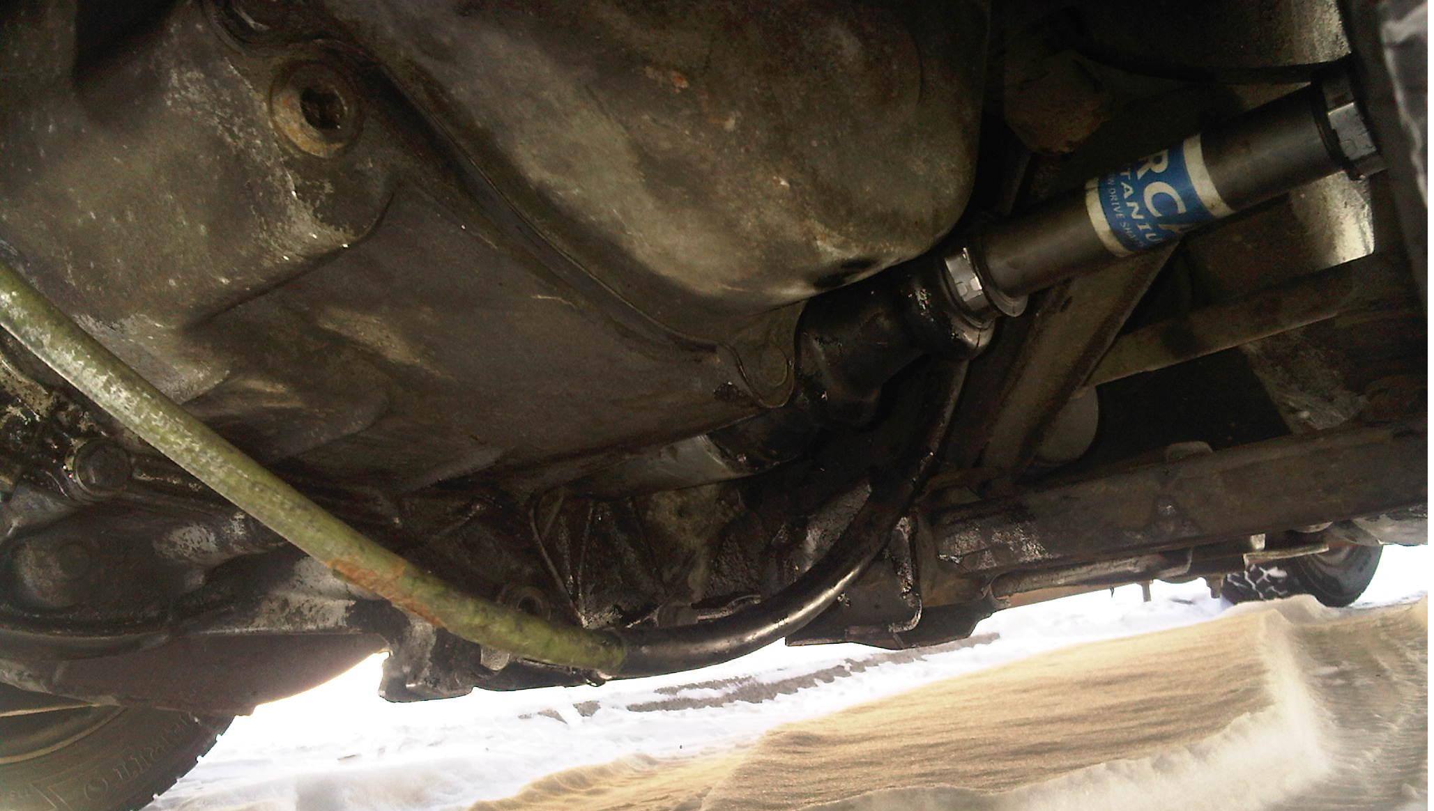 Voila mon soufflet de cardan coté gauche (donc le court) a sauter au niveau du roulement juste avant la boite de vitesse, il y a trois semaines. Impossible de remettre le soufflet car sur le chemin du retour il a exploser, j'ai perdu l'huile... Nikel koi !