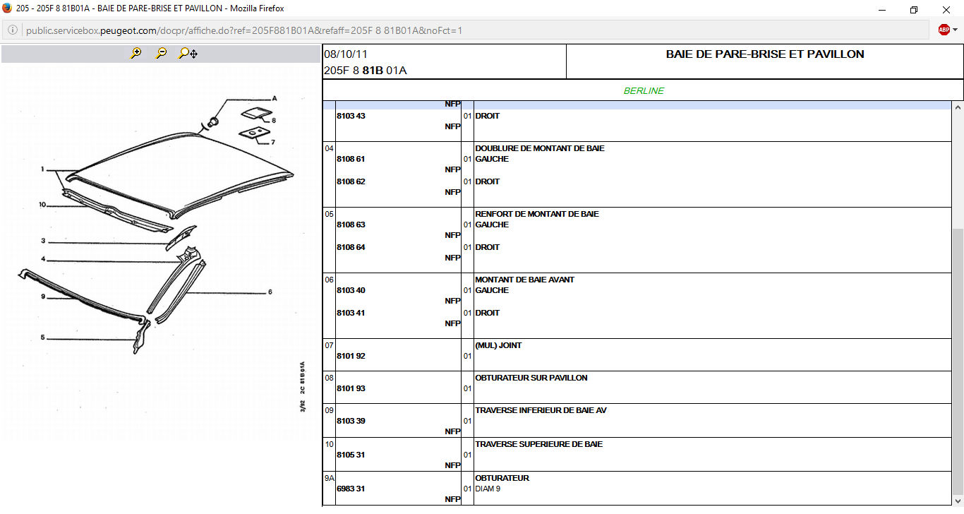 - 8101.93 Obturateur extérieur visible sur pavillon ( lui toujours en second par l'extérieur )