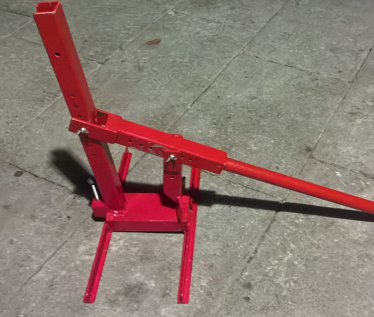 Une autre création dont j'ai pu parler, une décolleuse à pneus. Pas certain que ça intéresse beaucoup de monde, si c'était le cas, je file les cotes de fabrication, voire des plans :rolleyes: