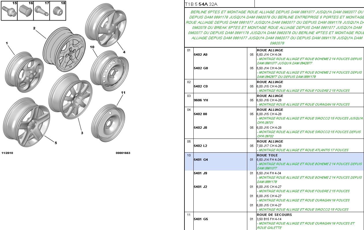 voici les données du service box pour les jantes de 206.