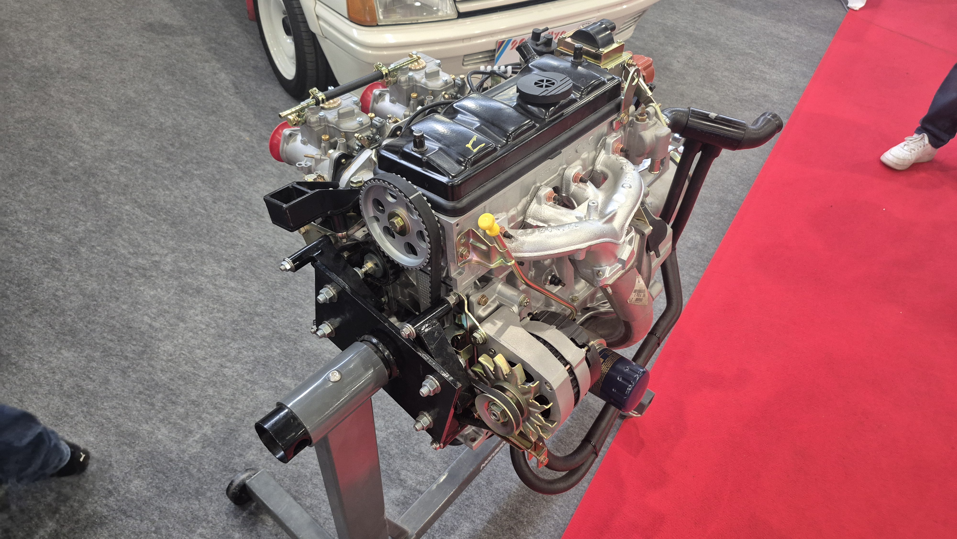 Mais que ça fait plaisir de vous voir sur ce salon, beaux comme des camions PTS, tous prêt à renseigner le chaland qui s'extasie (un p'tit cachet ?) sur la rampe de Weber du moteur d'expo devant le stand.