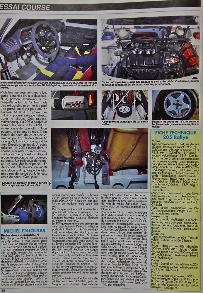 "le démarrage matinal d'une 205 Rallye ne sera jamais un acte banal" (Echappement)