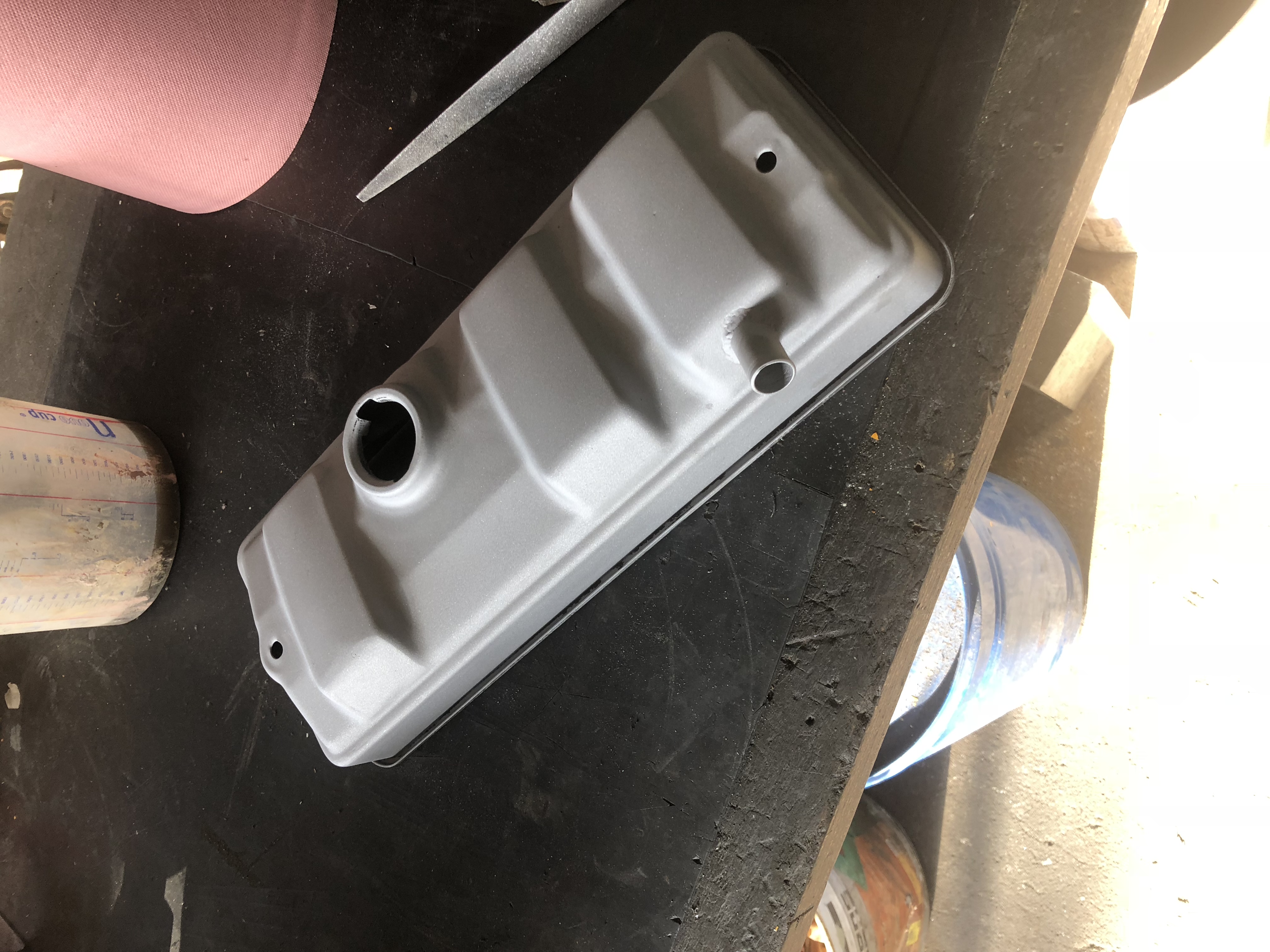 Aujourd’hui je me suis attaqué à la modification du cache culbuteur afin d’avoir le piquage le plus à gauche possible.