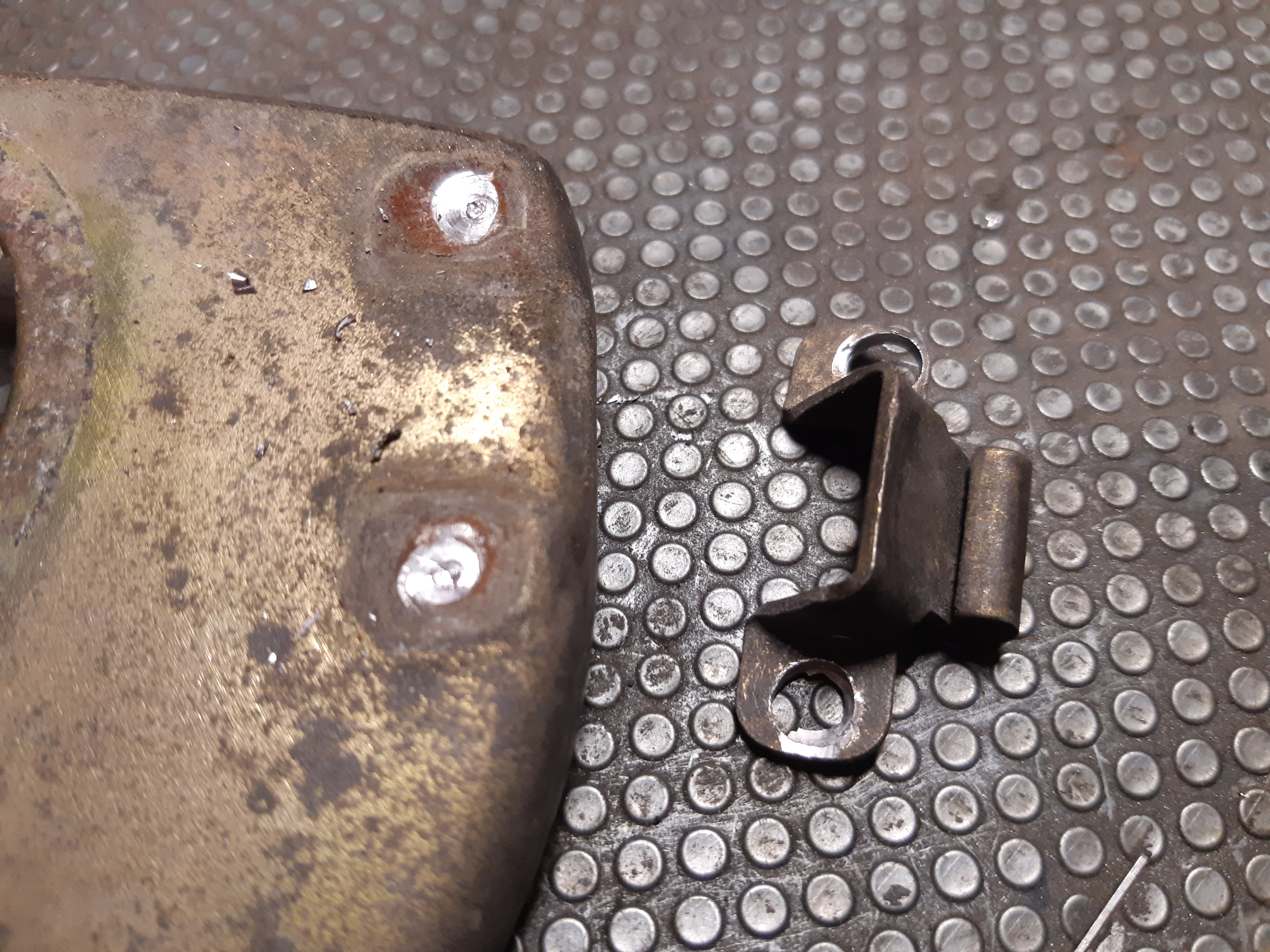 Ça été depointé,comment peut on faire ce genre de conneries ? :angry: Du coup,il me reste une autre tôle bien gougnafiéisée également,sûrement modifiée pour passer en pipe de 205 rallye mais hs....elle va servir de donneuse pour récupérer la seule embase restante et ensuite soudage sur l'autre plaque.