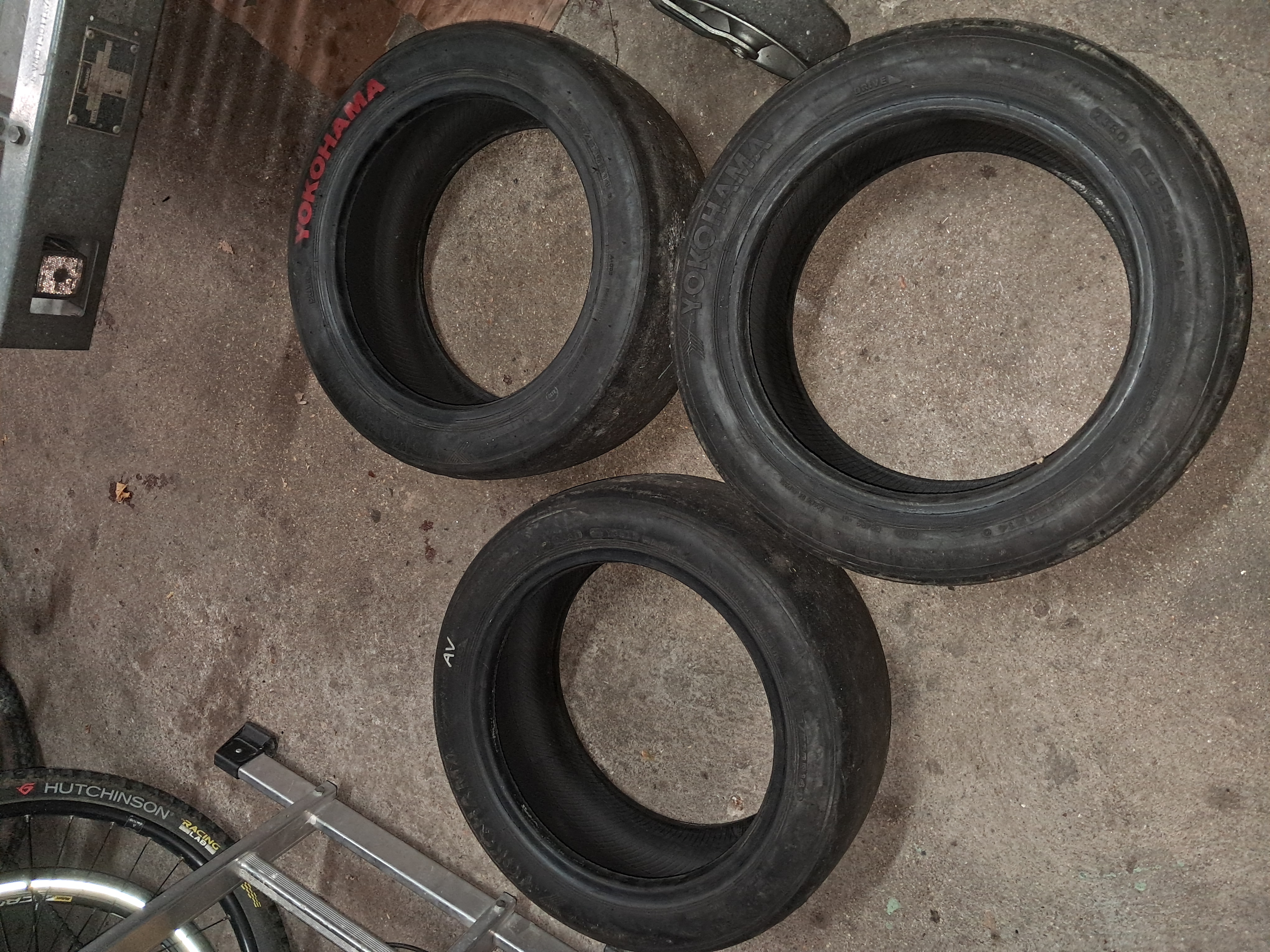 Je vends ces 3 pneus Yokohama A005 en 180/53014, taille très basse donc,c'est des gommes moyenne mais qui ont durcies ,idéal pour du circuit,et il y a de la marge avant le temoin d'usure .
