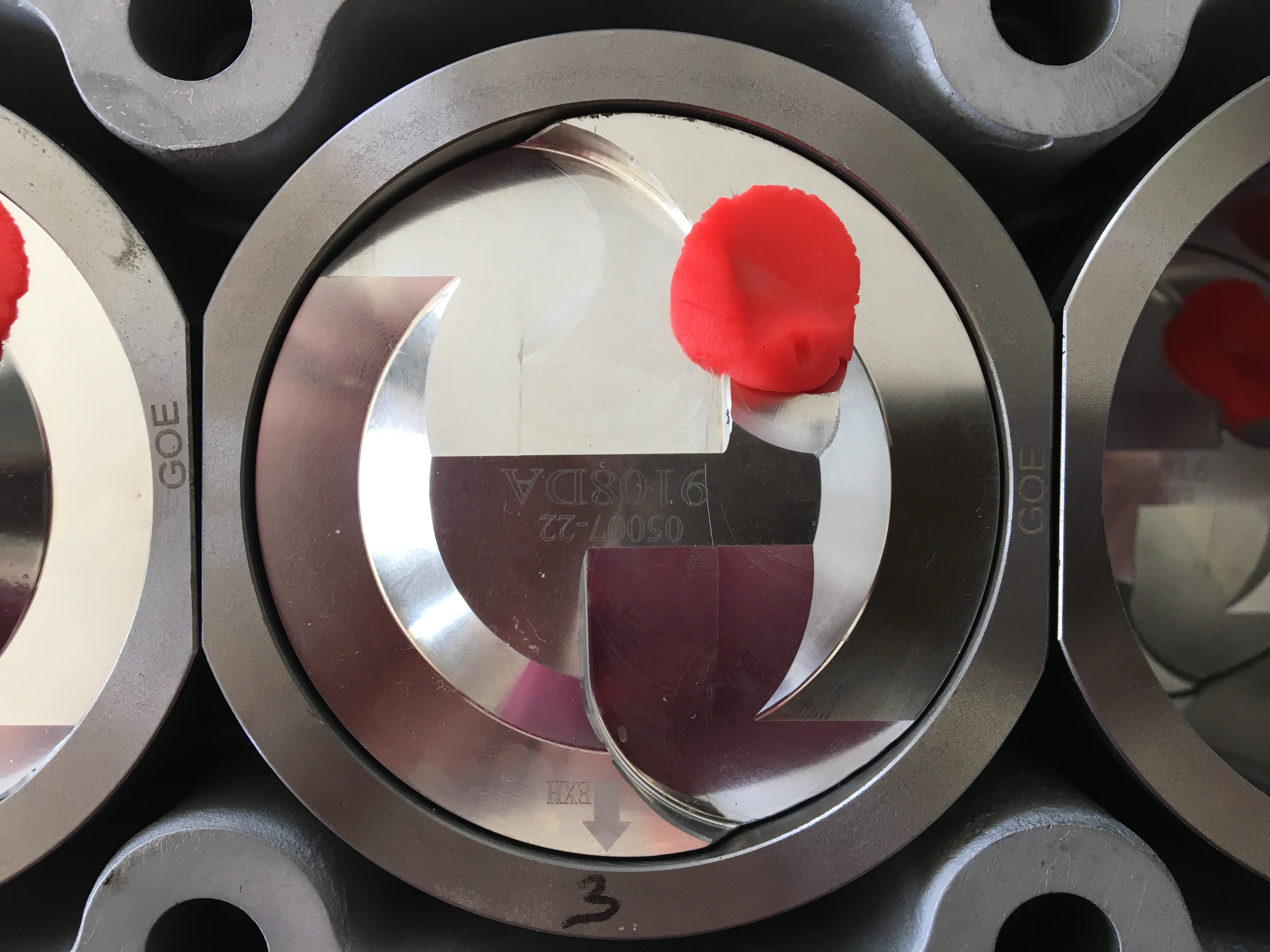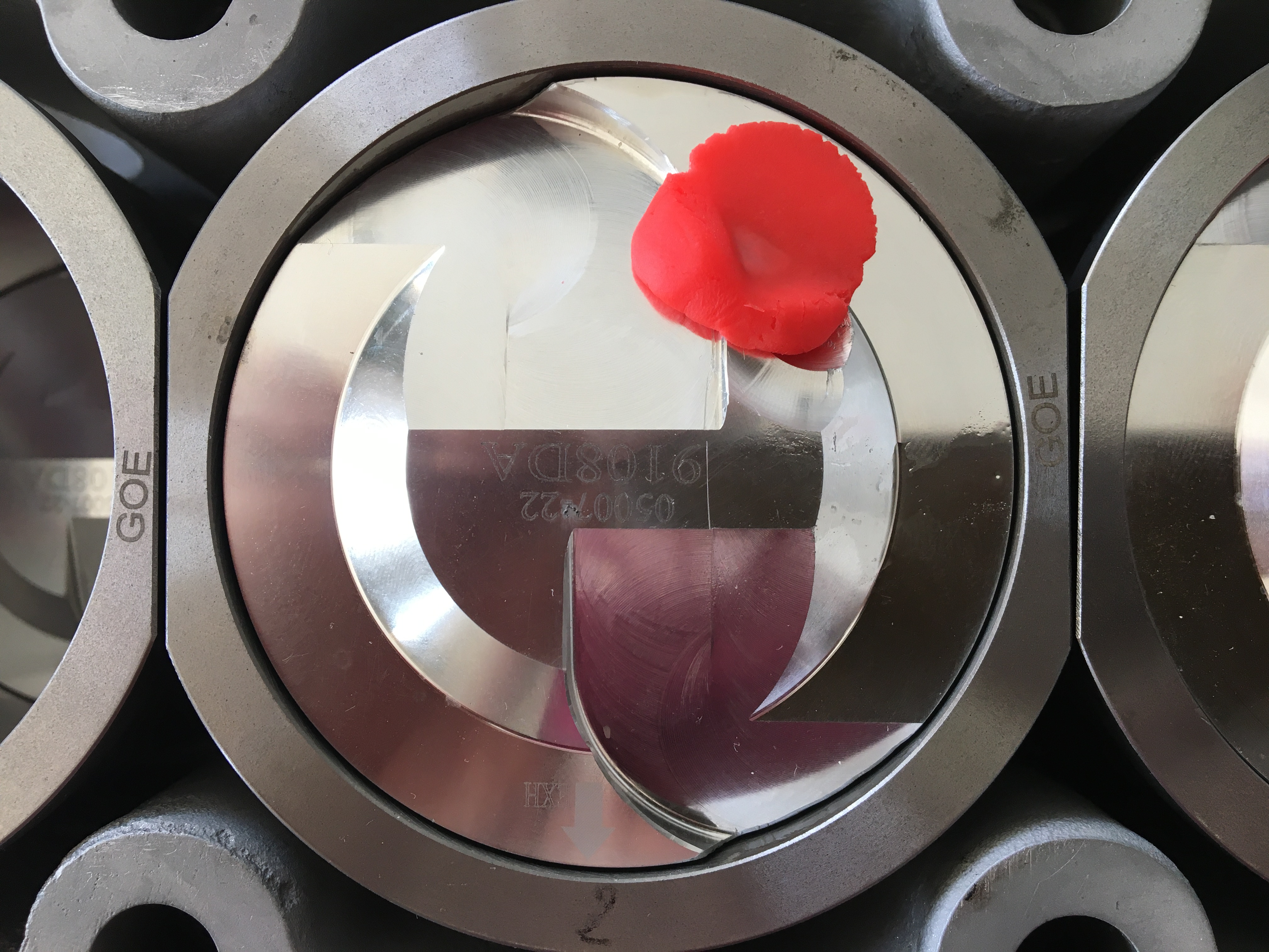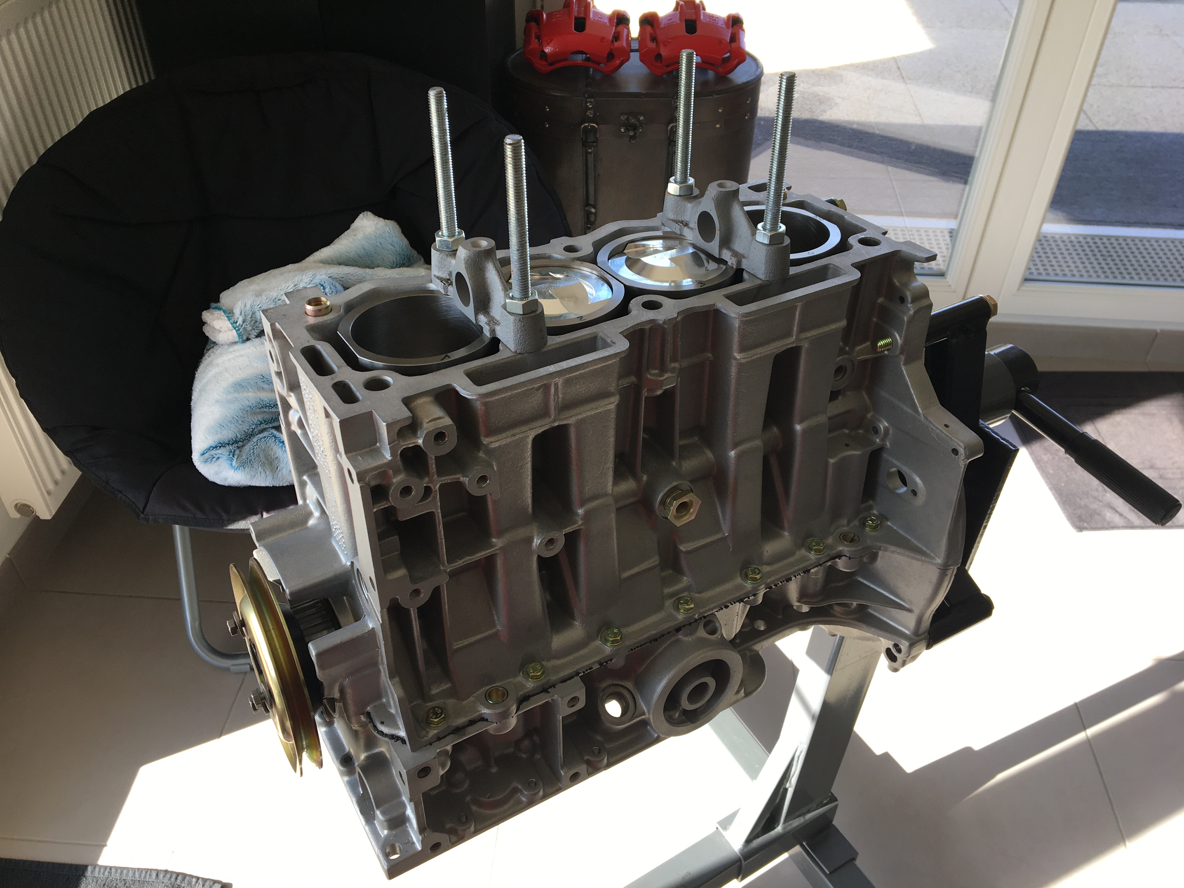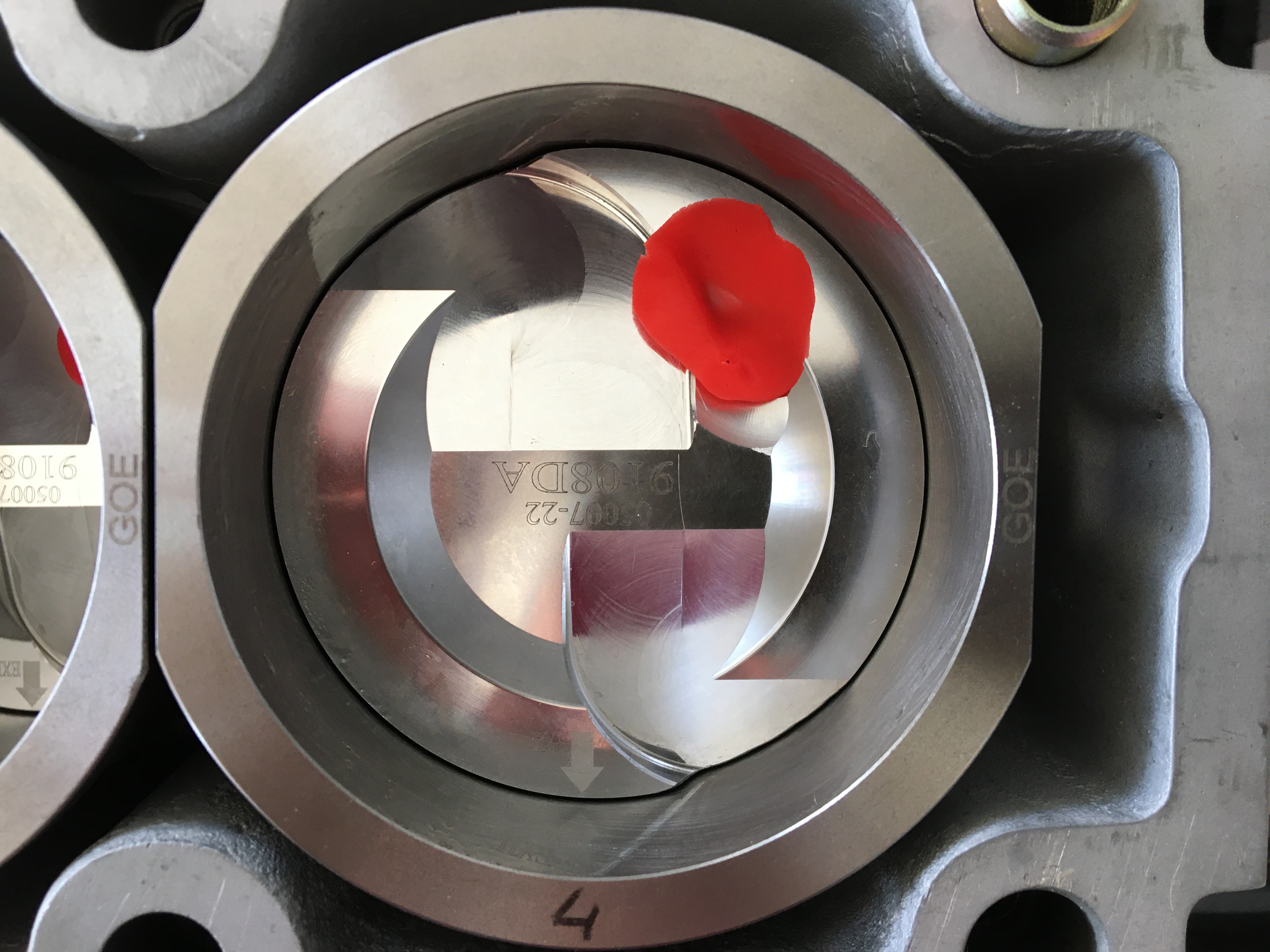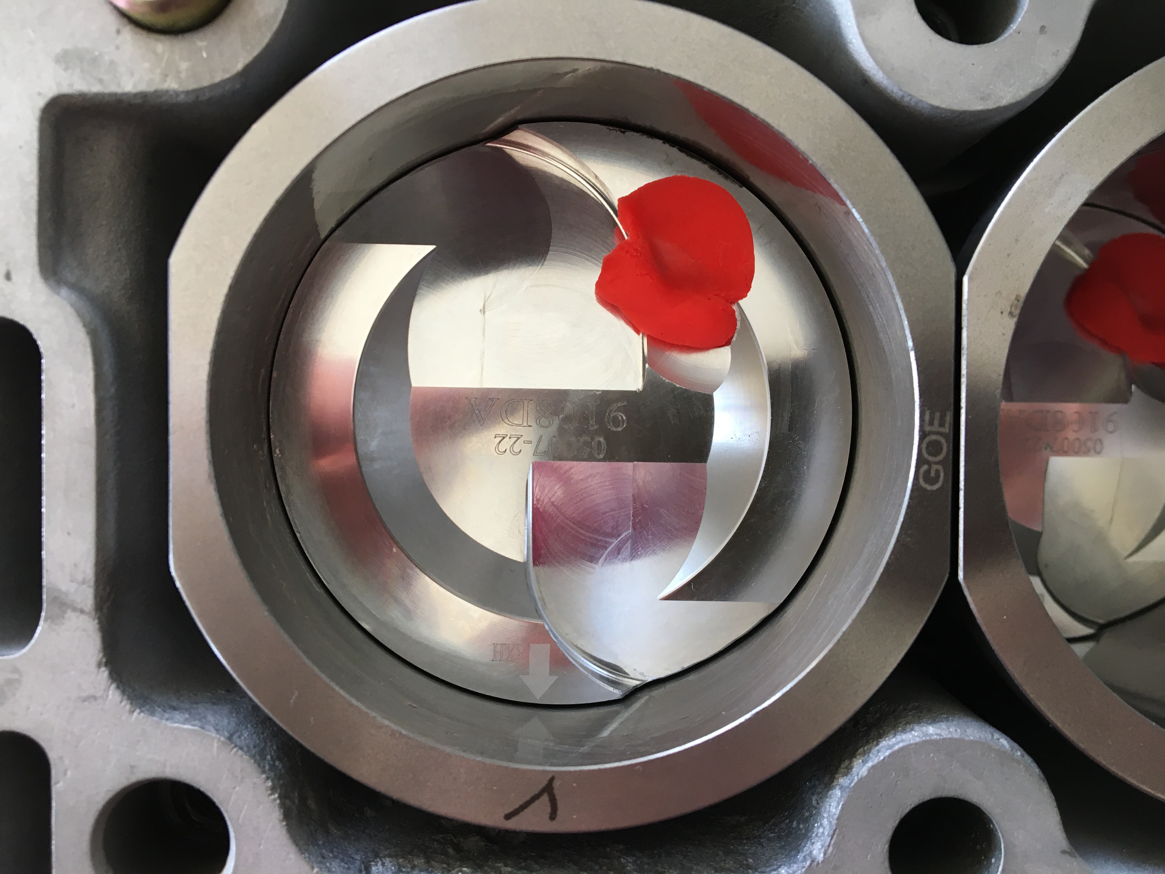 Les têtes de pistons touchaient très légèrement la culasse sans joint. J’ai donc éliminé le petit surplus pour avoir une marge de sécurité une foi le joint en place.