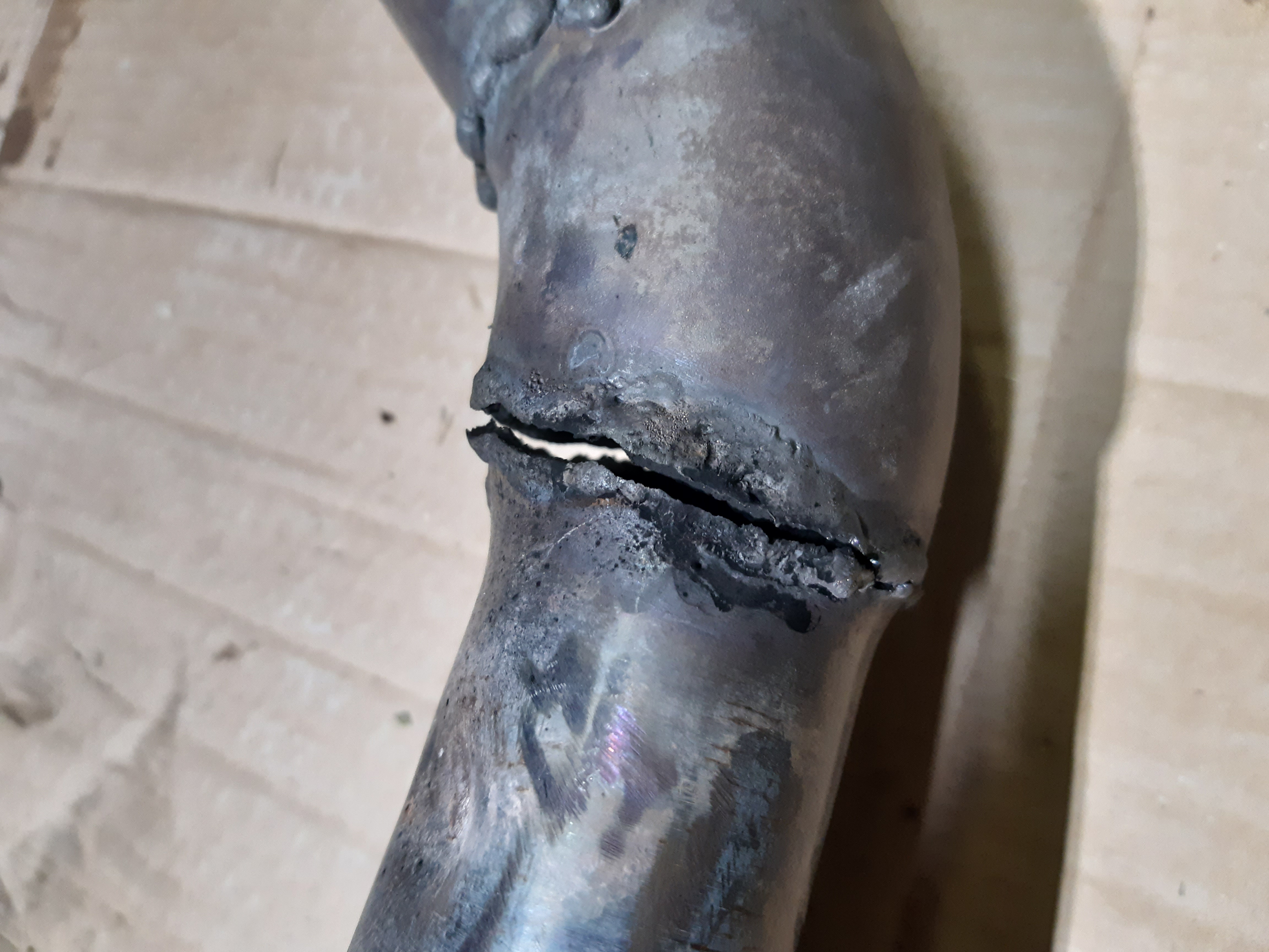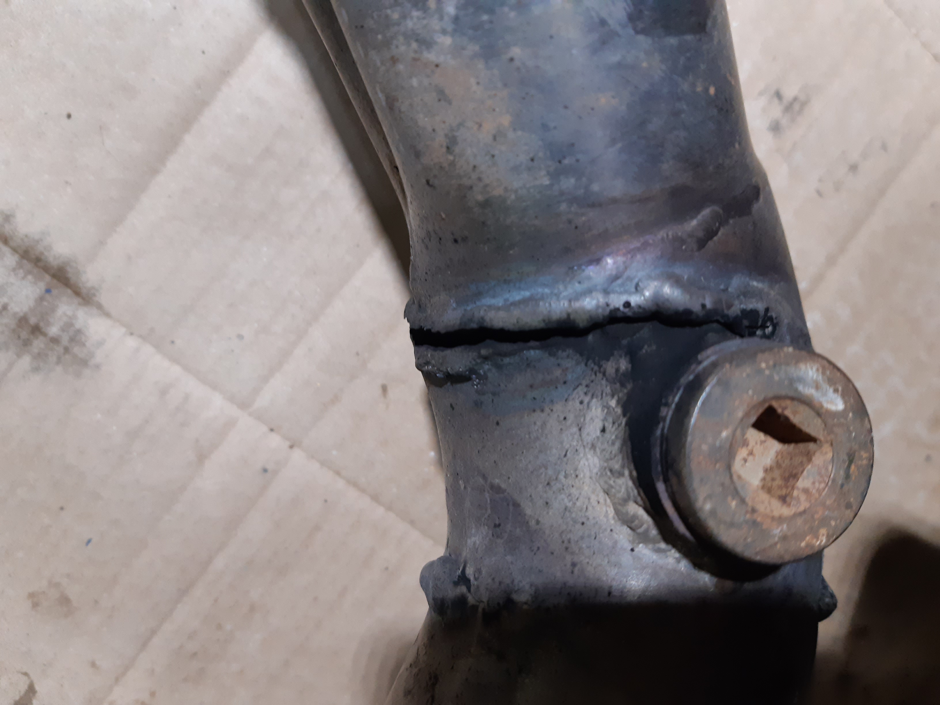 La même crique que là ou je l'avais ressoudé il y a 3 ans,fissuré sur les 3/4 de la circonférence :angry: ,trop de tension sur cette ligne,je vais faire des motifs,raz le c..