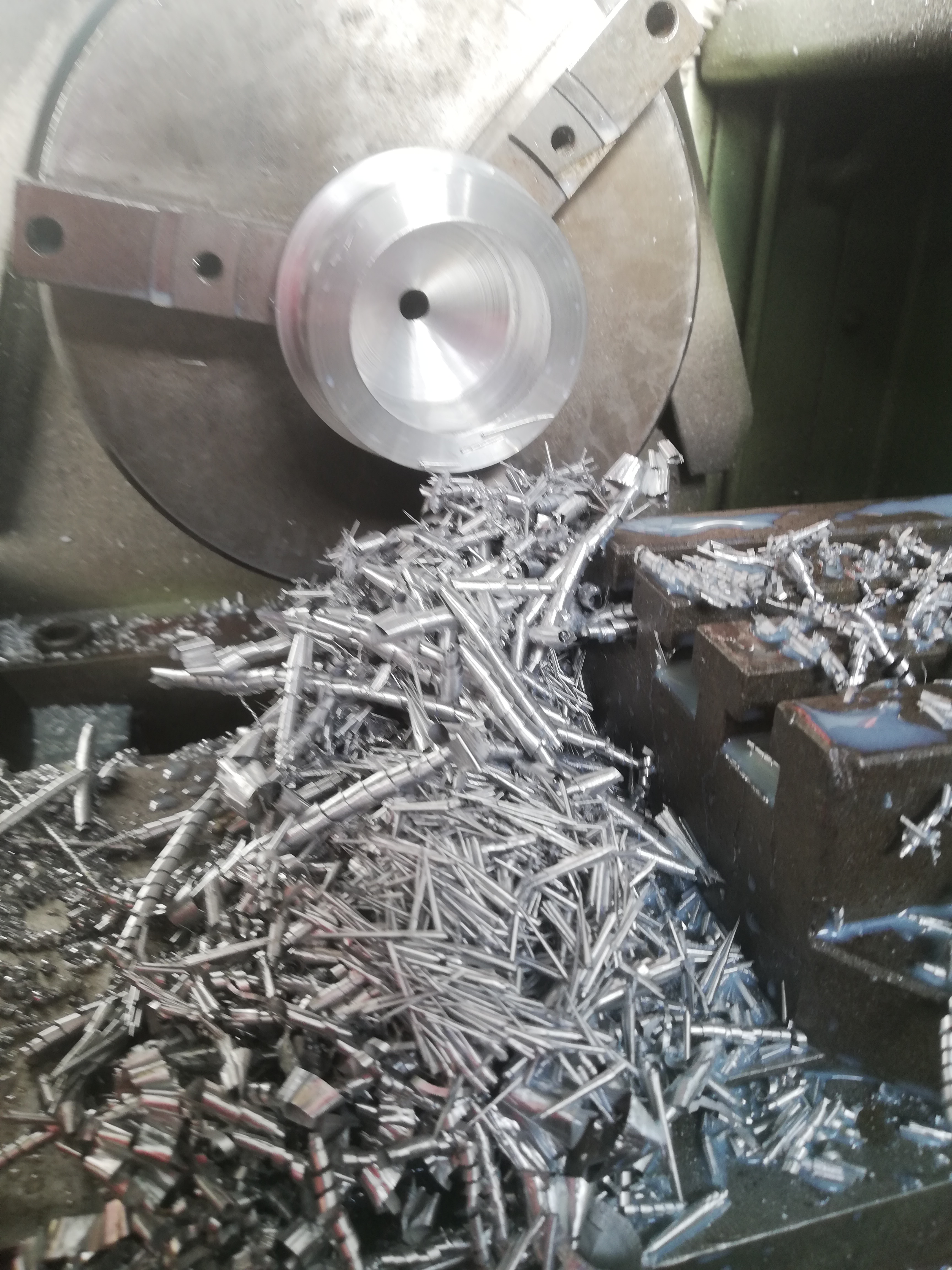 Après quelques mètre de copeaux, on a une belle ébauche de trou d'environ 50 mm de diamètre.