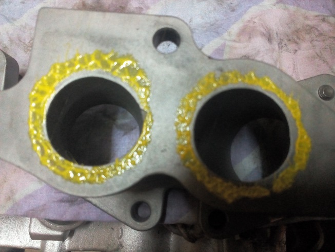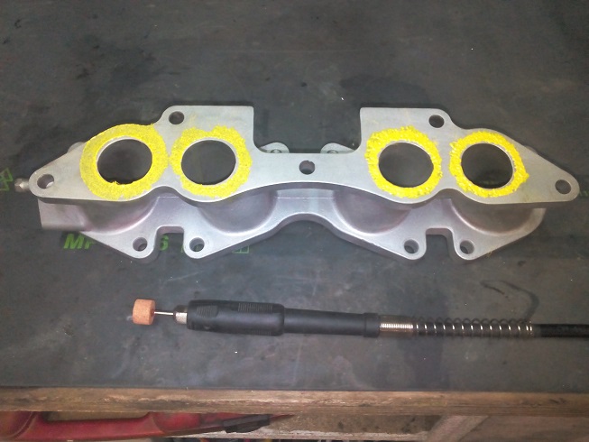 Au niveau de la "preparation", je ne fais pas grand chose. Je vais simplement soigner un peu les conduits d'admission : Aligner pipe et culasse et éliminer tous les petits défaut de moulage d'origine. J'ai de la chance, j'ai très peu de boulot sur la culasse. Le gros du travail est sur la pipe