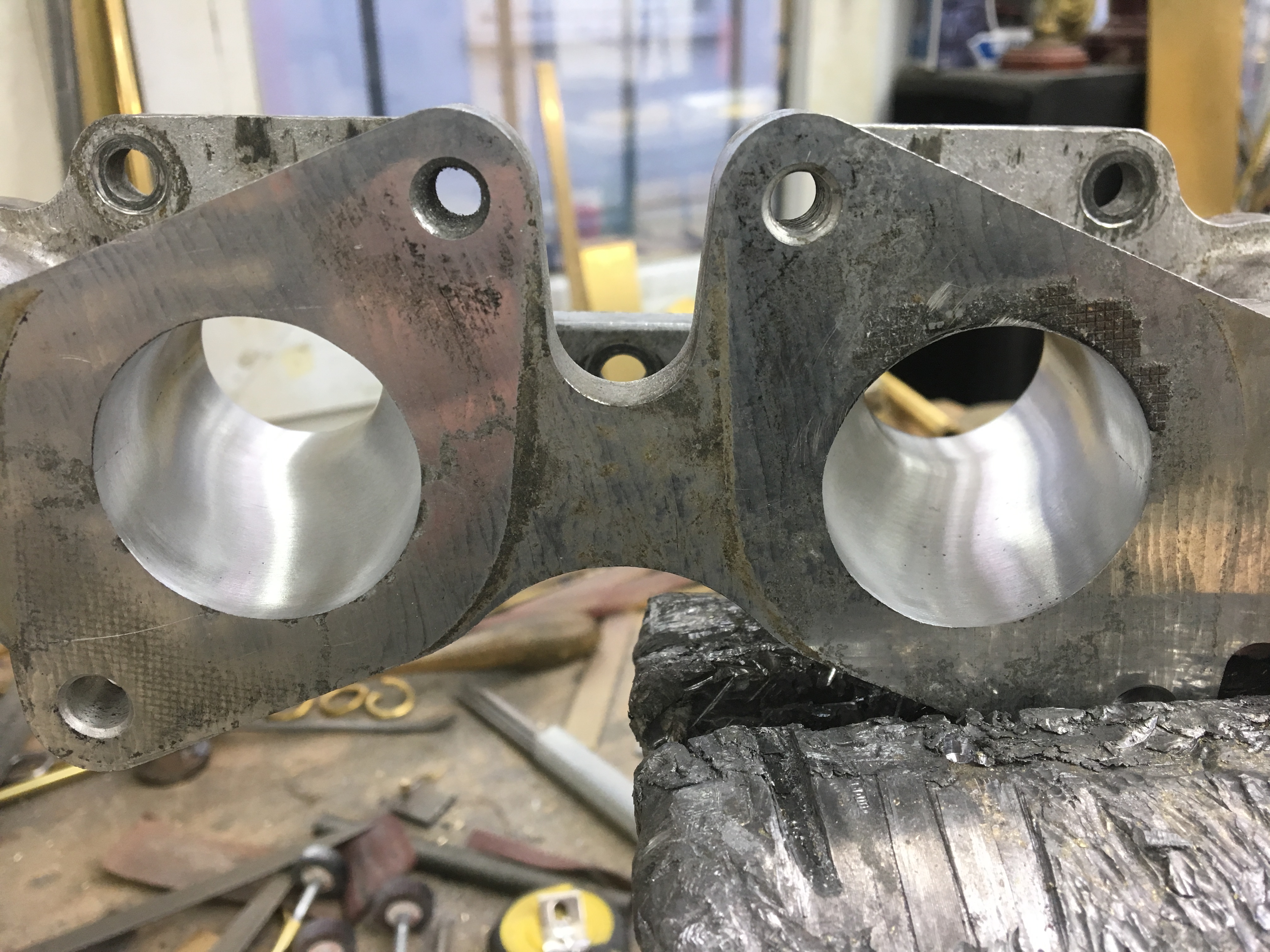 Après l’alignement des conduits avec la culasse, polissage miroir en phase finale.