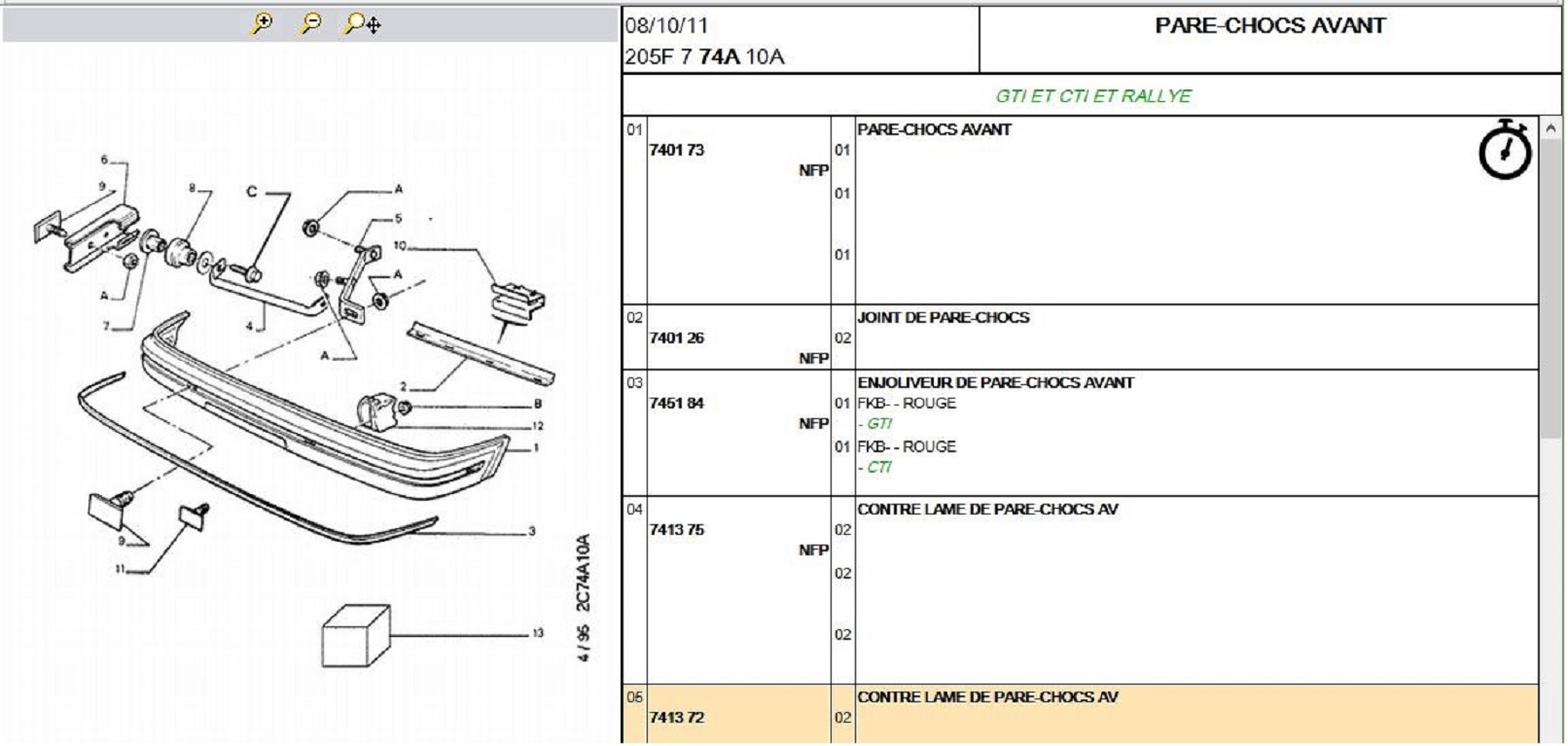 En fait je recherche ces deux pièces......je pense que la tringle de renfort, peut peut être se trouver sur d'autres 205?