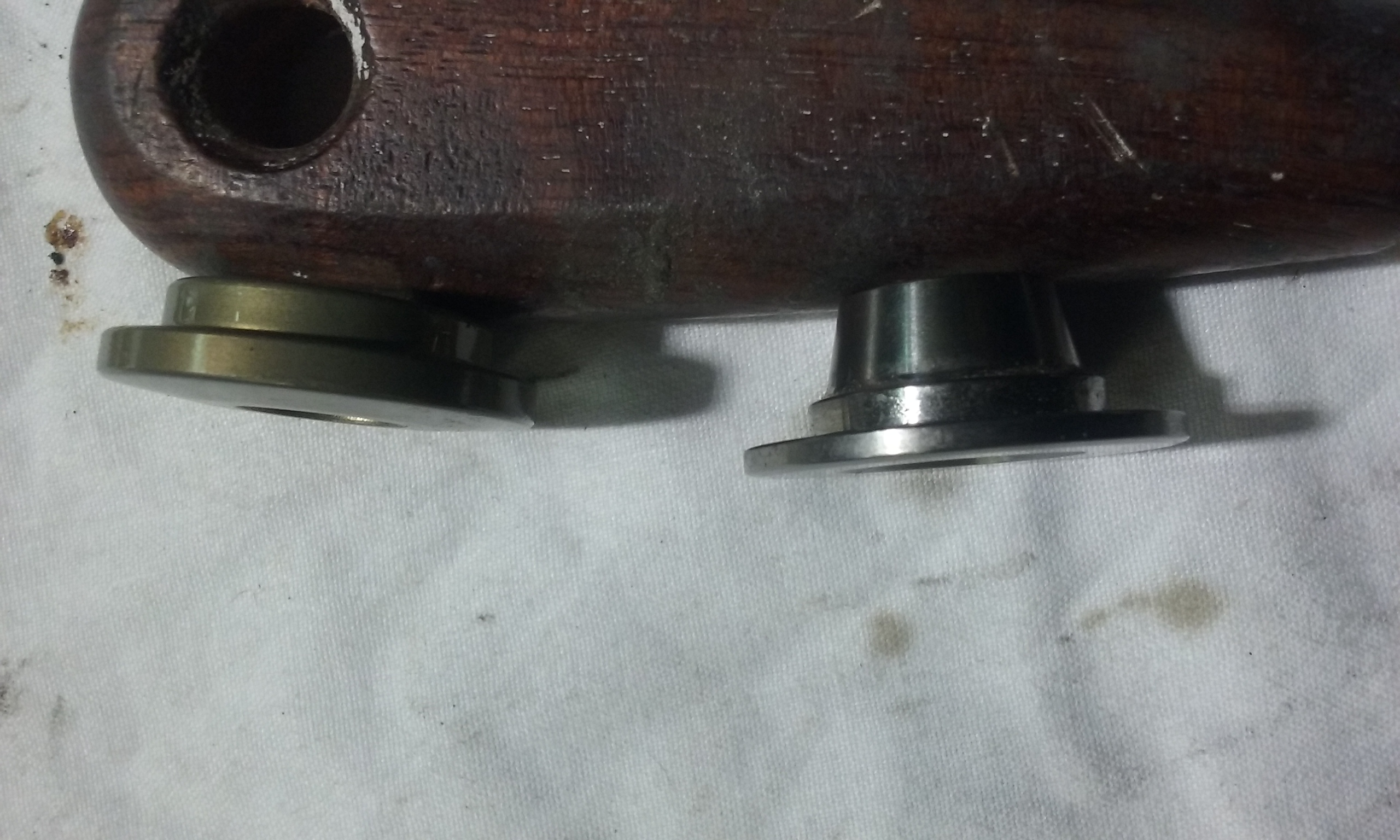 Problème de coupelles de soupapes...à gauche une Catcam comme j'avais déja,à droite une titane qui provient du lot acheté à Jérémy,seulement il y a une grosse différence de cotes ,j'ai l'impression que c'est pour un montage en double ressorts