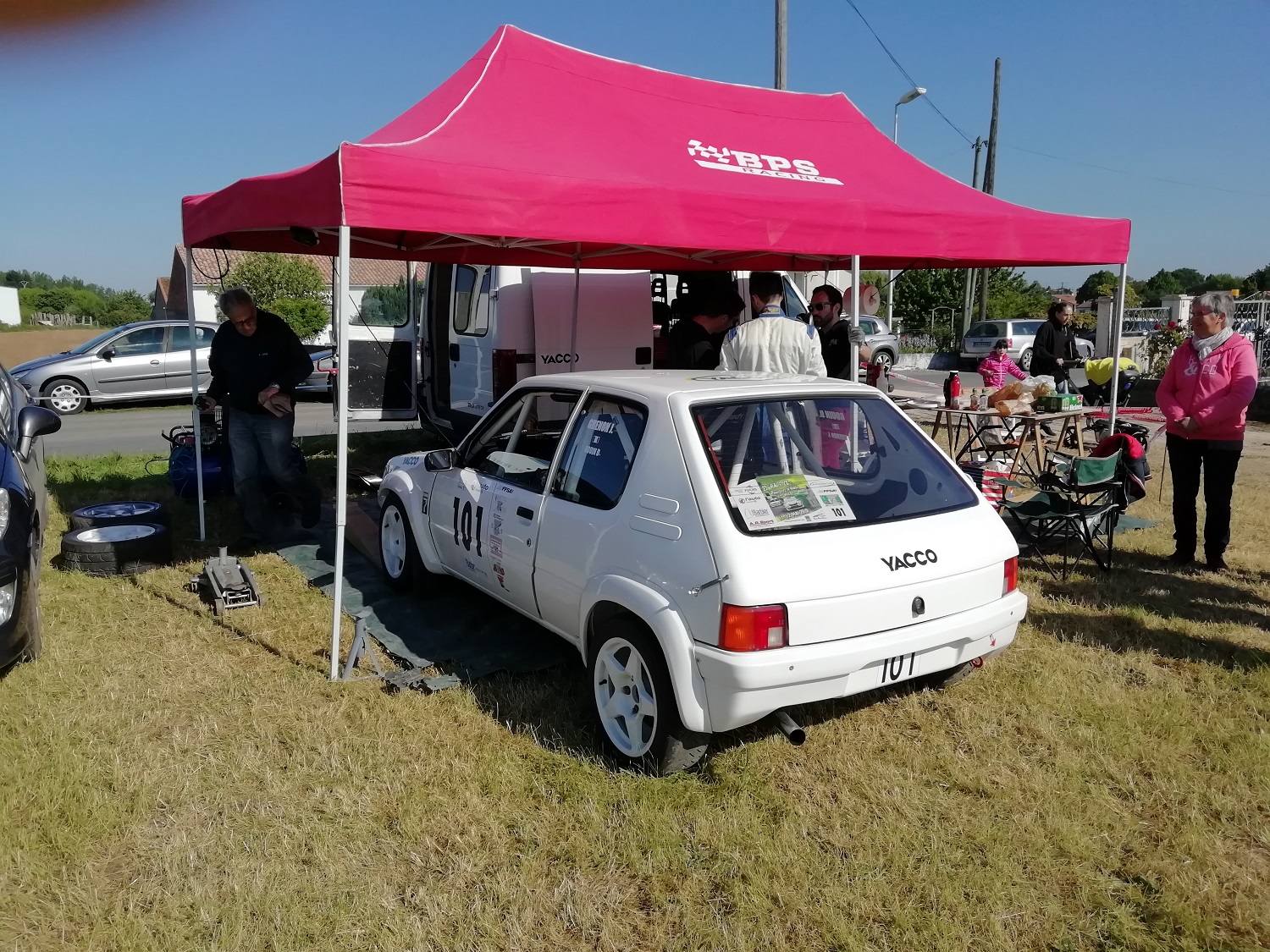 - Première assistance: Thierry, l'oncle à Estelle, gère l'assistance avec mon pote Gaëtan, mon grand frère Eric est là, ça me rassure aussi, il commence à me conseiller. Mais pas grand chose à faire sur la voiture, juste monter les roues slick.